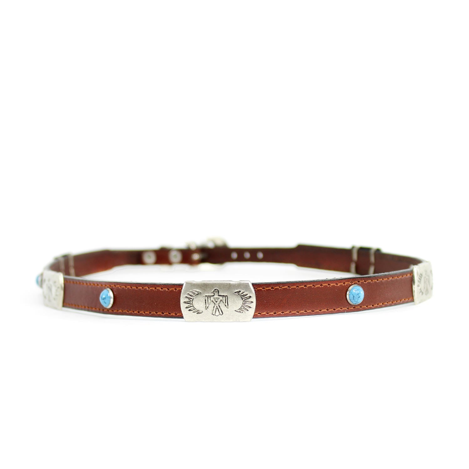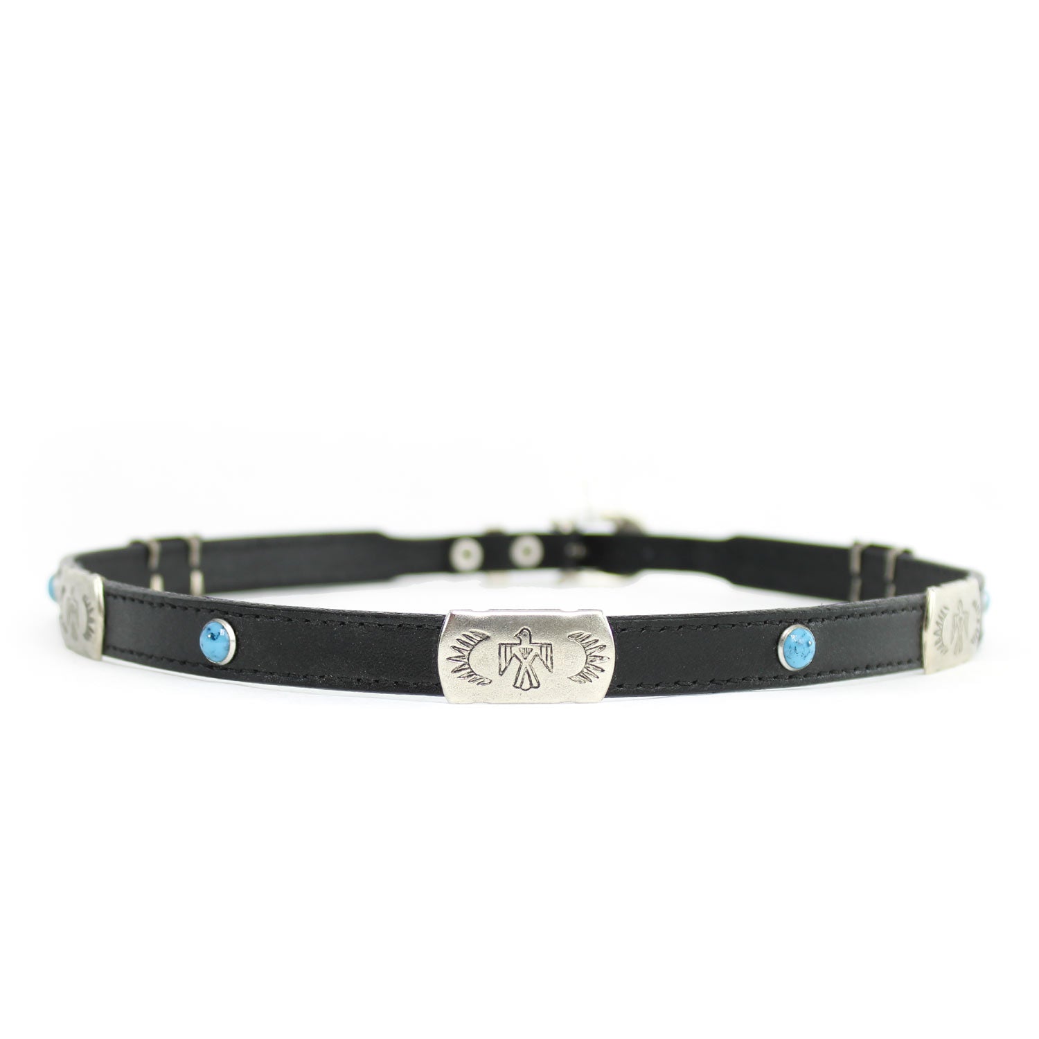 Leather Hat Bands with ThunderbirdMake a bold Western statement with this Austin Accent® leather hat band, featuring striking rectangular silver conchos detailed with a Thunderbird design and turquoise embellishments. Crafted from premium, high-quality leather, this hatband blends traditional Southwestern influence with rugged craftsmanship, adding instant character and individuality to any cowboy or fashion hat.
