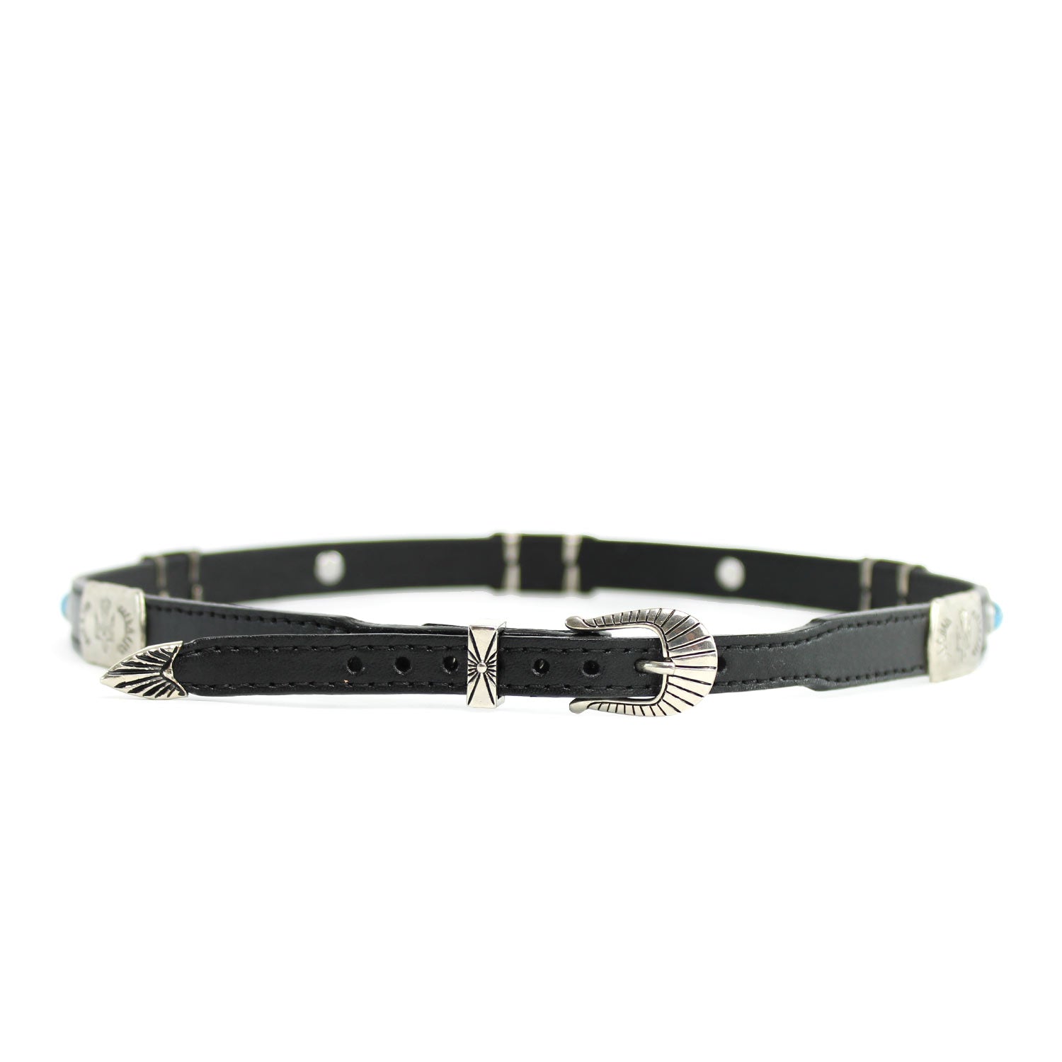 • Design: Rectangular silver conchos featuring Thunderbird motifs with turquoise accents