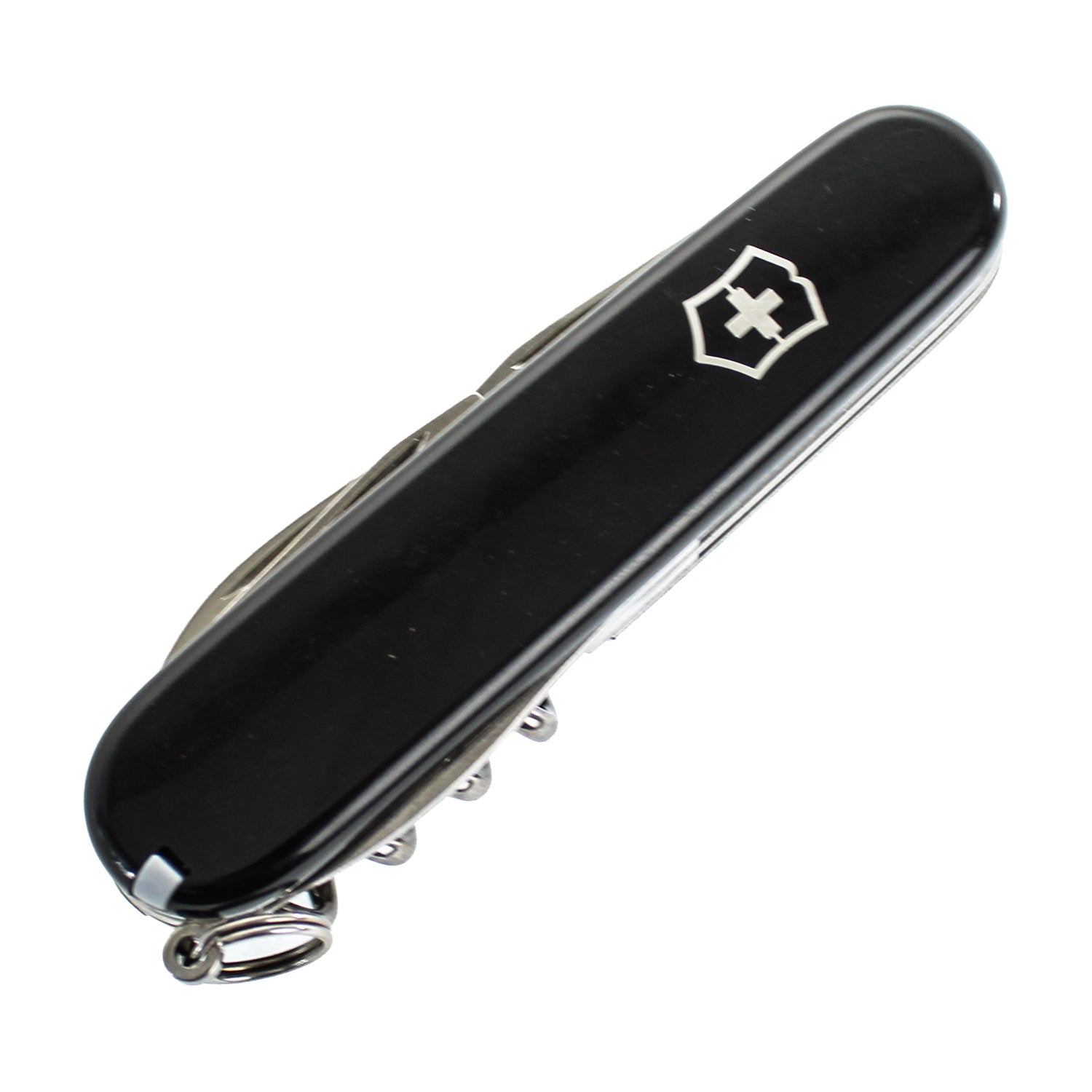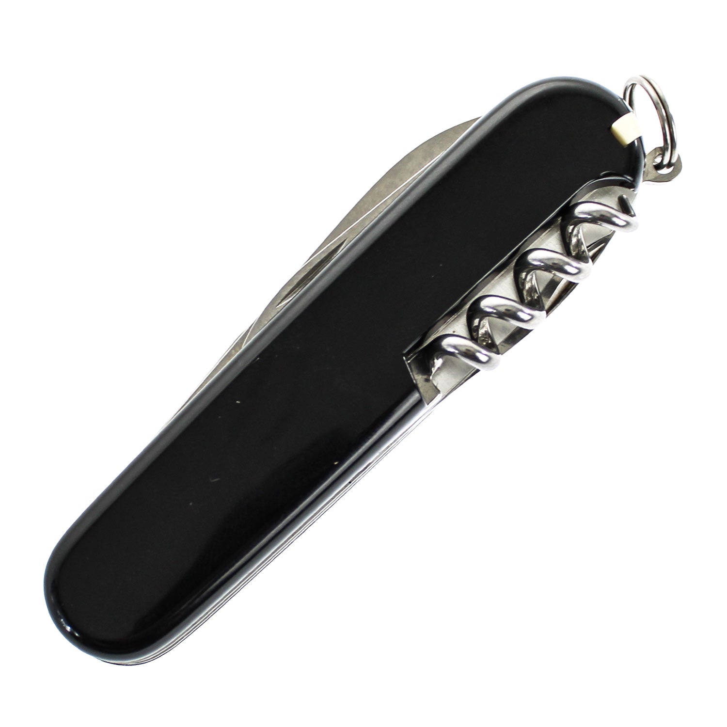 • Tools & Features: Can opener with small screwdriver, cap lifter with large screwdriver and wire stripper, reamer/punch with sewing eye, corkscrew, toothpick, keyring