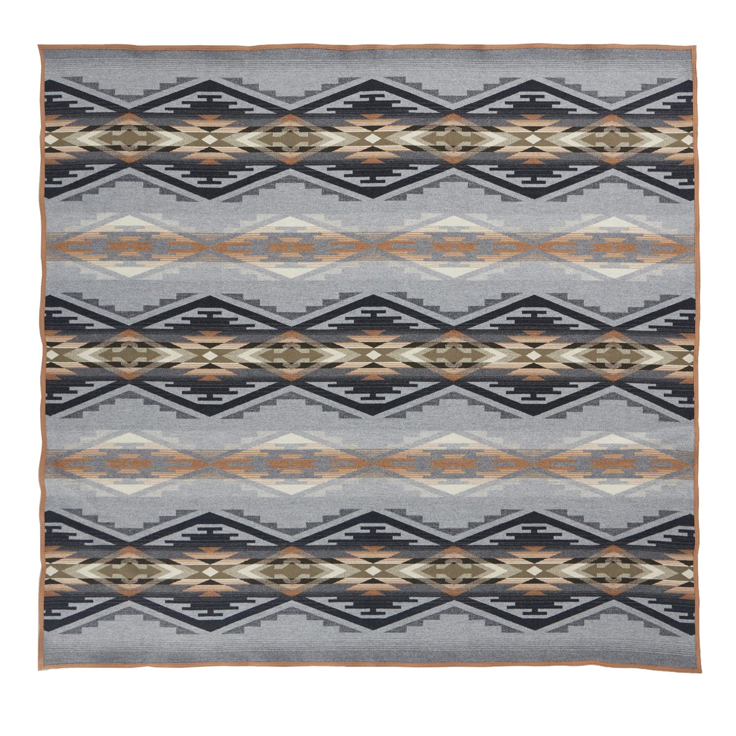 Inspired by the peaks of Tumalo Mountain in Oregon’s High Cascades, this USA-made blanket captures the beauty of the surrounding volcanic landscape with intricate geometric patterns representing the terrain and Tumalo State Park.