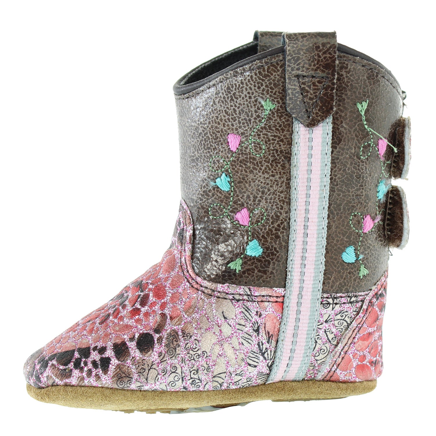 10140 Pink/Brown Hearts Infant BootSweet and charming, this soft infant Western boot features a pink and brown heart design with a comfortable fit for little feet. Lightweight and flexible, it’s perfect for adding a touch of Western flair to your child’s early steps.