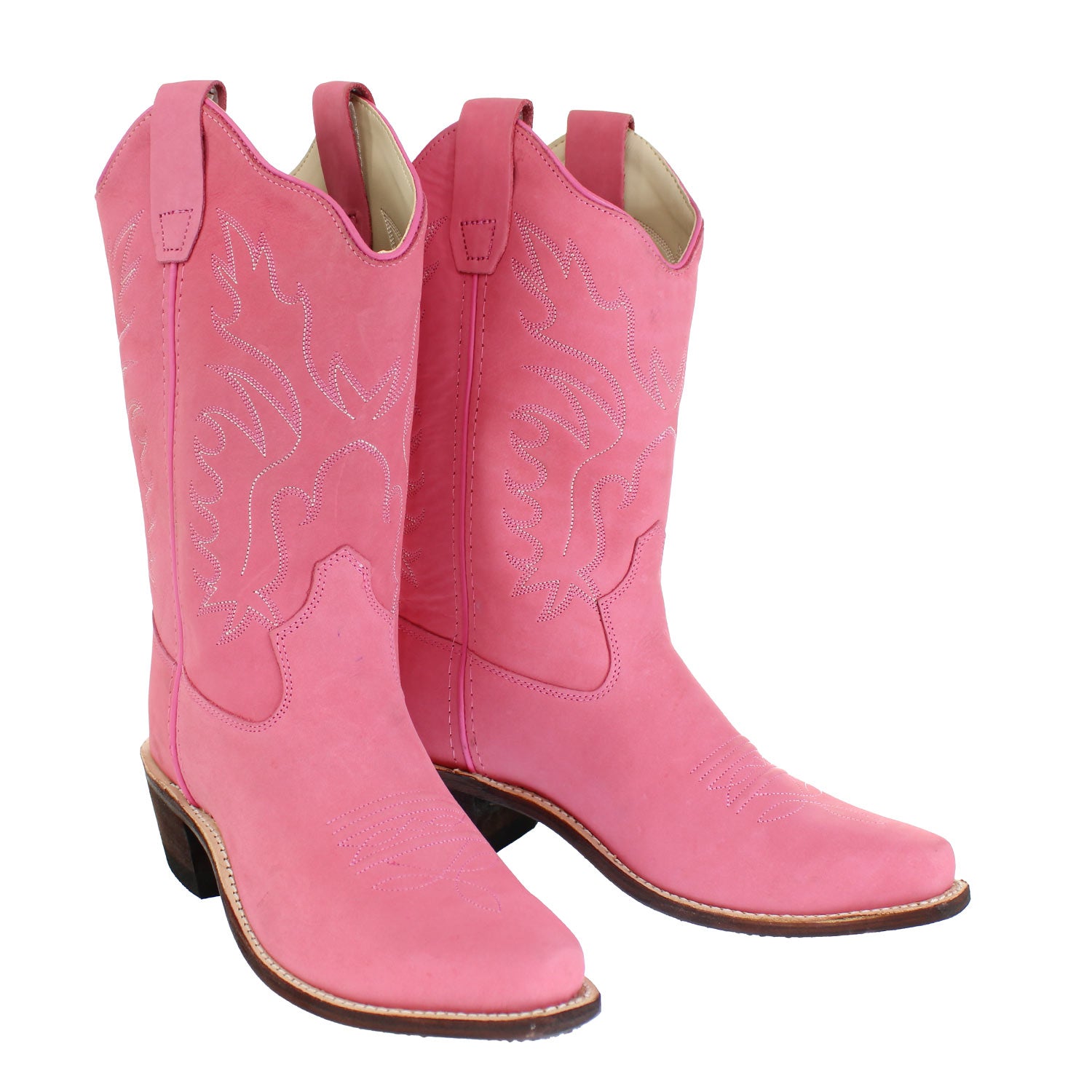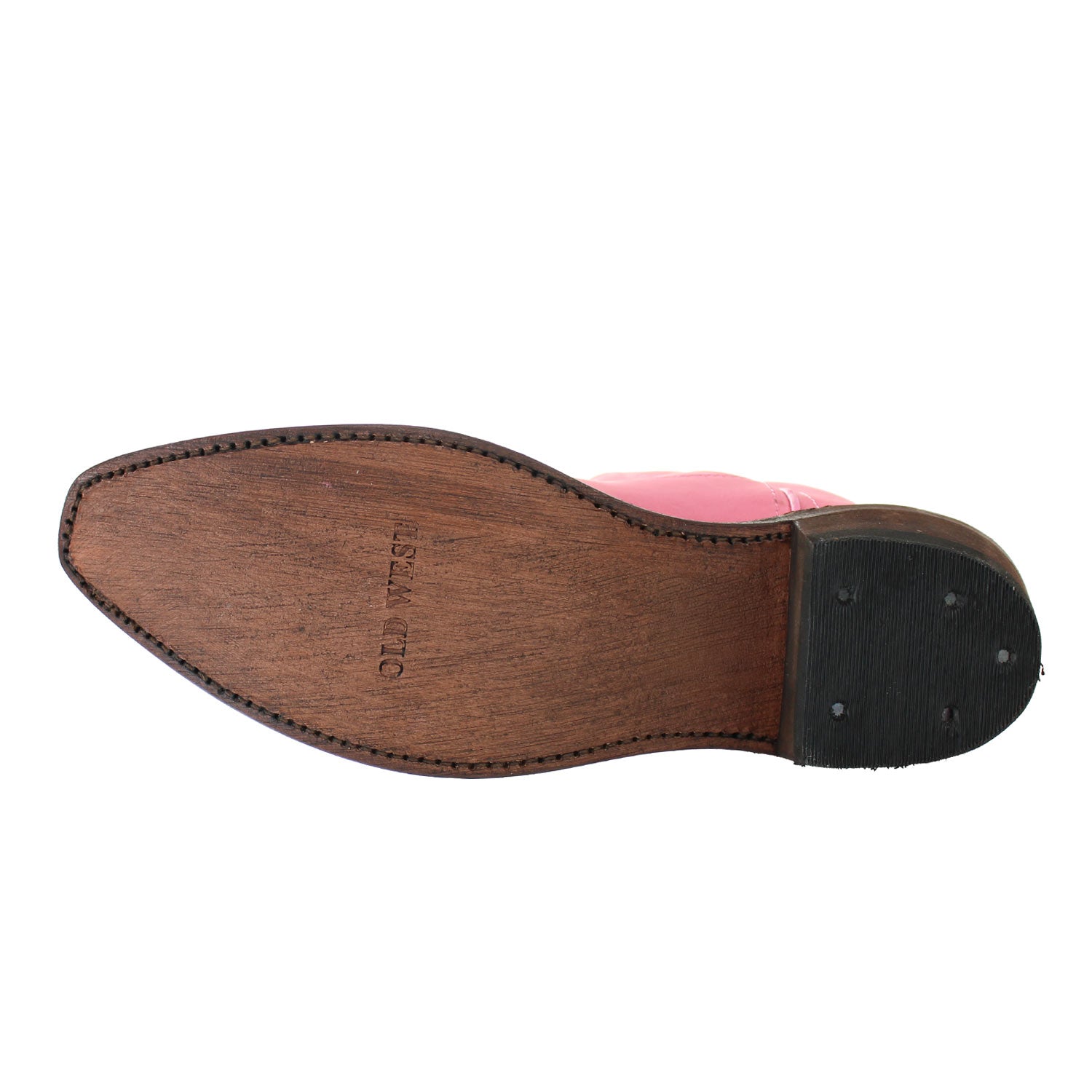 Make every step bright and bold with the Old West Hot Pink Boot! Crafted from all-leather foot and an 8" scallop shaft, this boot combines durable construction with playful style. Featuring a snip toe, hand-corded medallion, and 3-row fancy stitching, it’s perfect for little cowboys and cowgirls who love to stand out. Built with Goodyear welt construction, reinforced shanks, and a cushioned leather insole, these boots are made for comfort and long-lasting wear.
