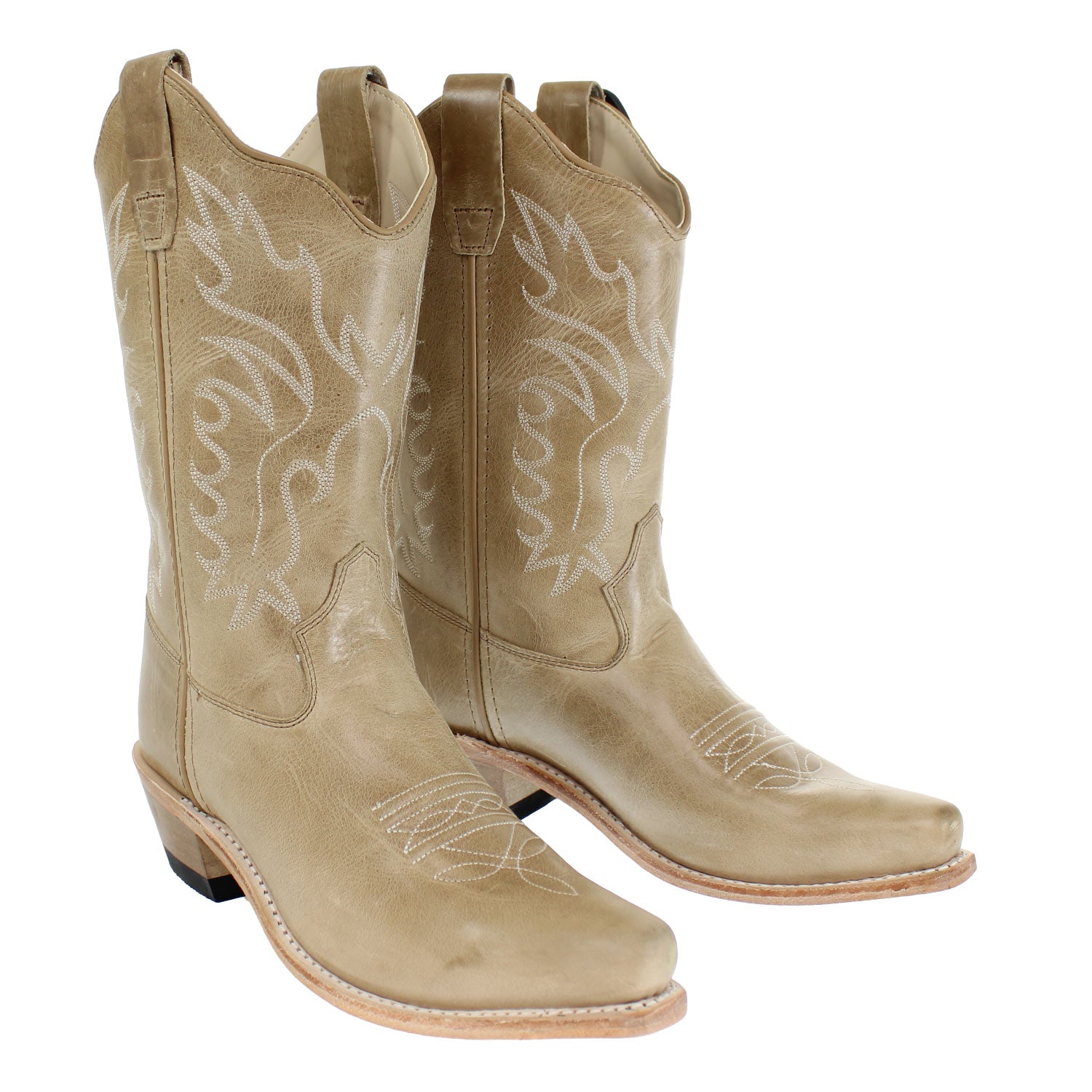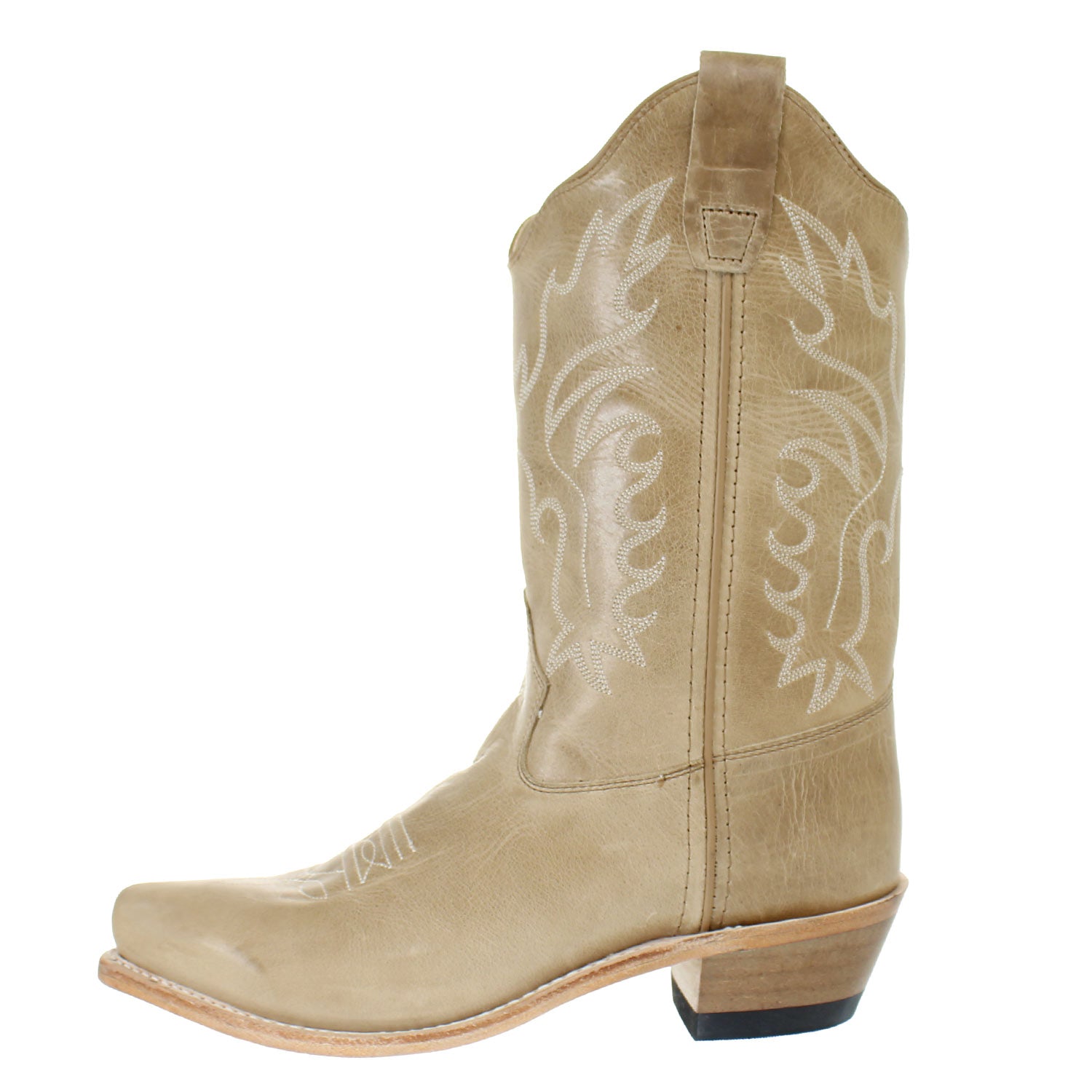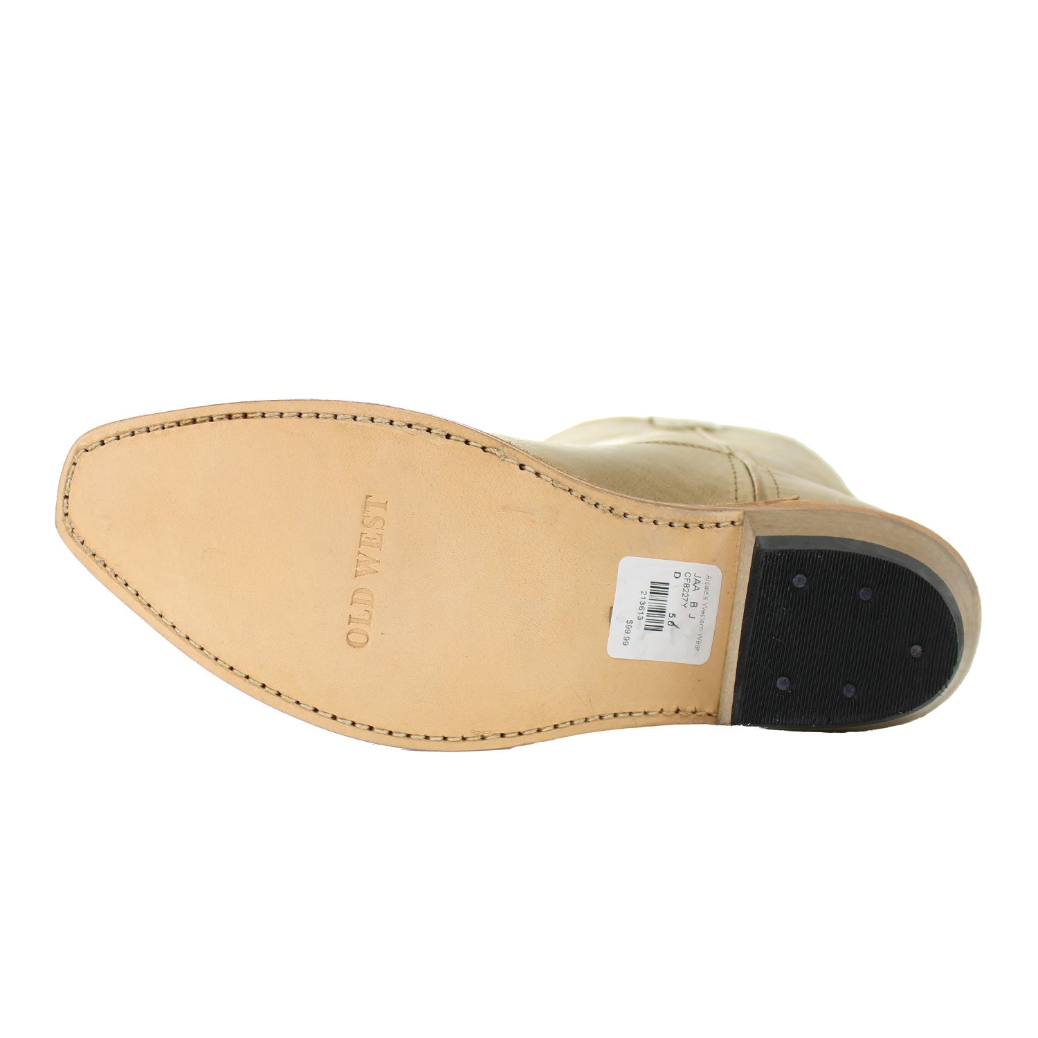 Distressed Tan Western BootRide into Western style with the Old West Distressed Tan Boot! Crafted from all-leather foot and shaft, this boot combines rugged durability with classic cowboy flair. Featuring a snip toe, hand-corded medallion, and 3-row fancy stitching, it’s perfect for everyday adventures or special occasions. Built with Goodyear welt construction and a cushioned leather insole, it’s made to keep little cowboys comfortable as they explore the trail or town