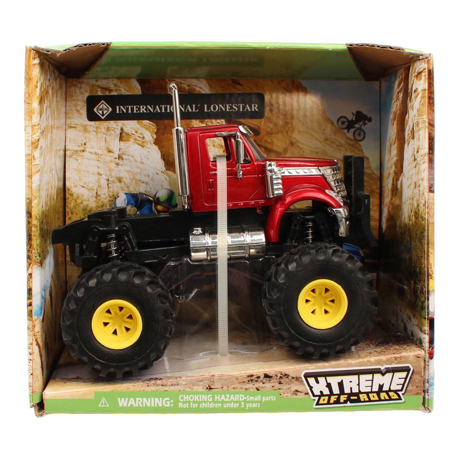 International Lone Star Off Road TruckBuilt for big adventures in a small size, this International Lone Star off road toy truck lets kids take on any terrain. Crafted from durable die-cast metal, it features oversized monster tires and working suspension for realistic action.