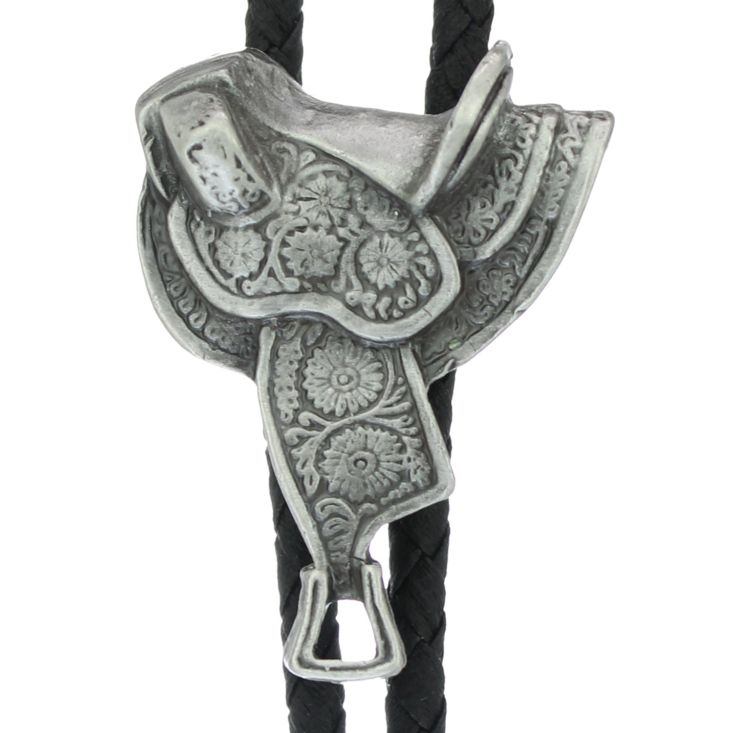 A versatile collection of classic Western bolo ties featuring assorted pewter designs and decorative medallions. Each bolo showcases traditional Southwestern styling with a black braided leather cord and silver tips, making them an easy way to add authentic Western flair to any outfit. Perfect for everyday wear, special occasions, or retail assortment displays.