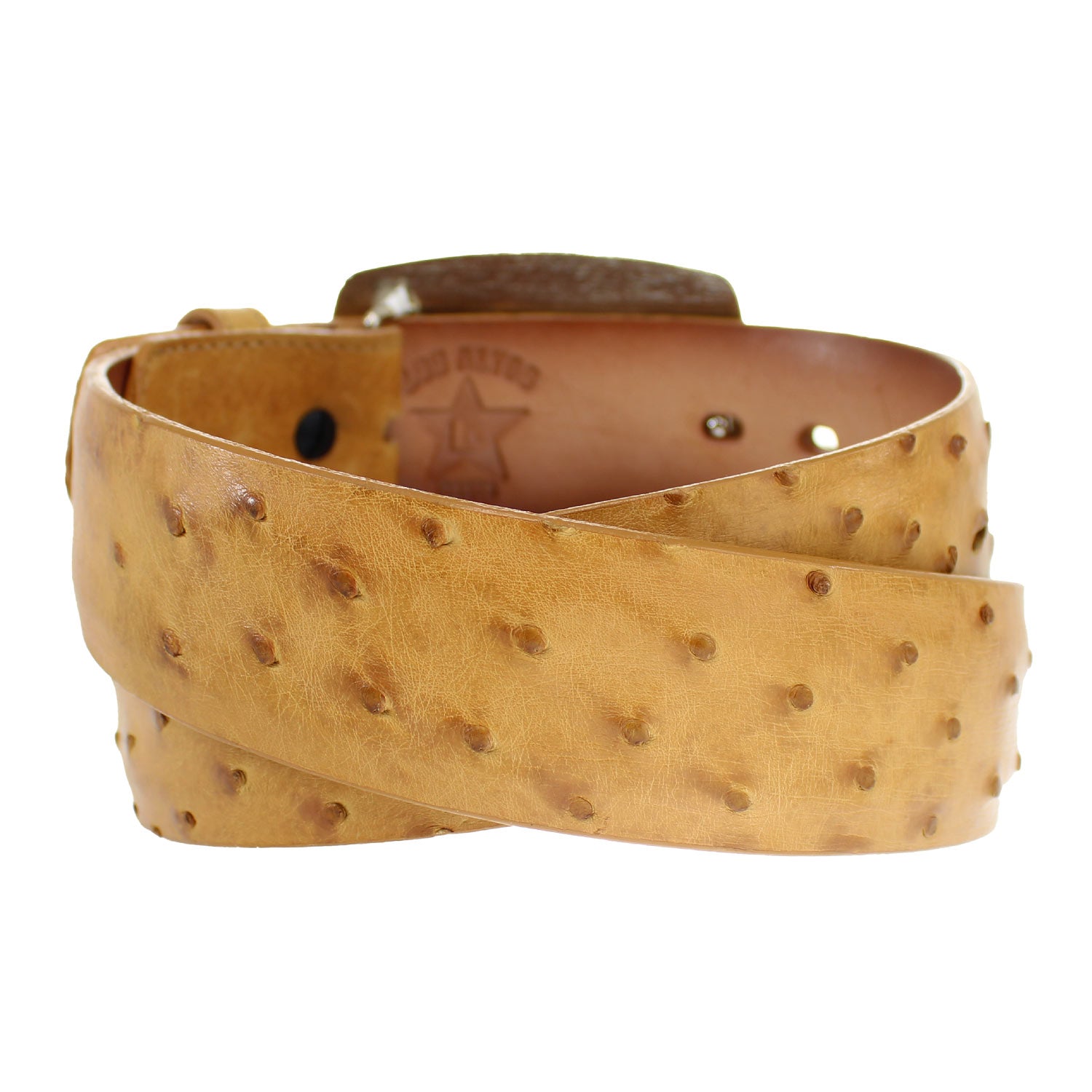 Amber Genuine Ostrich Cowboy BeltCrafted by master artisans, the Los Altos Ostrich Belt showcases premium exotic leather and impeccable Western craftsmanship. Made from genuine ostrich skin and fully lined with authentic leather, this handmade belt offers unmatched texture, durability, and luxury—perfect for pairing with your favorite boots.