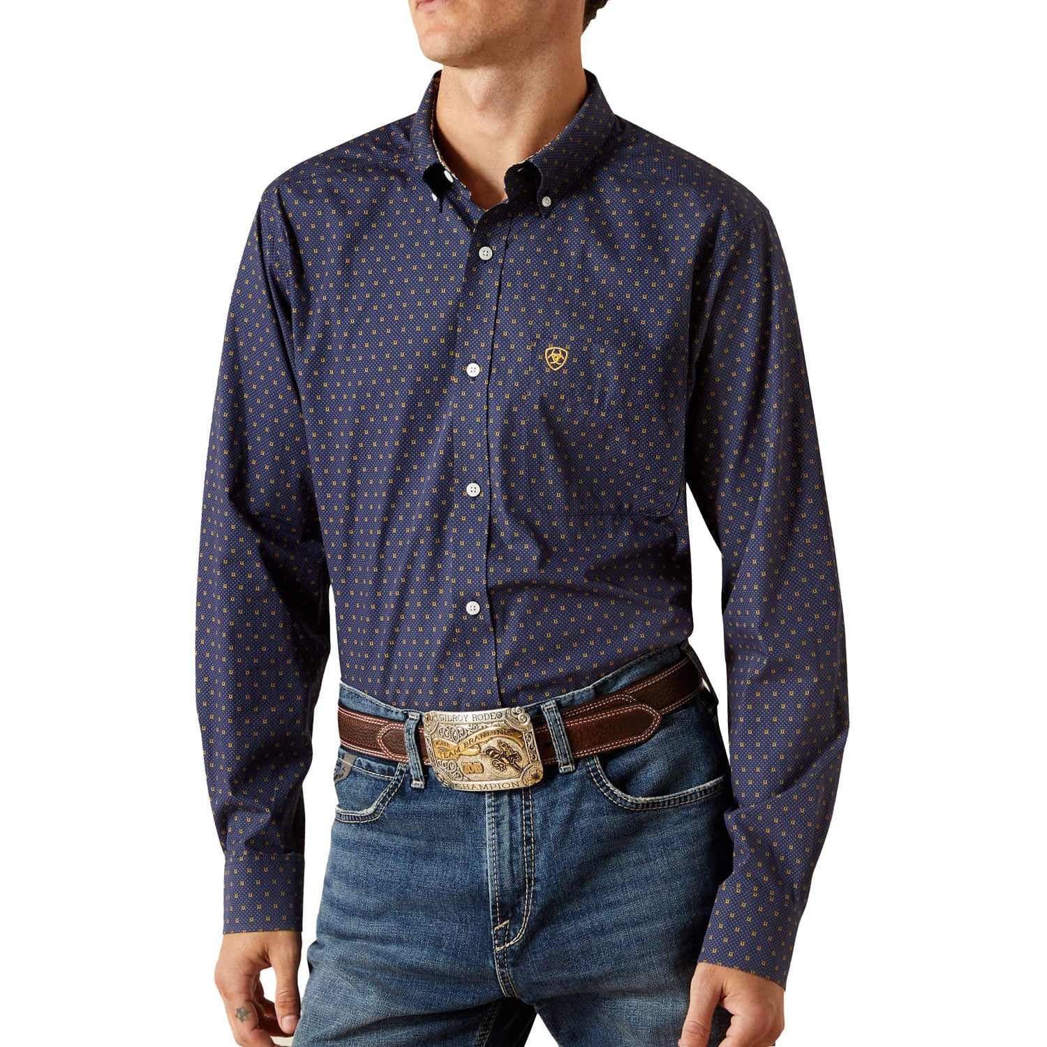 Ariat Wrinkle Free Daven Fitted ShirtStay sharp with this navy fitted shirt, designed to look crisp and polished with minimal ironing, perfect for work or everyday wear.