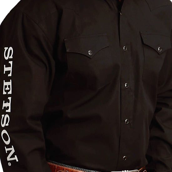 • White "Stetson" Embroidery On Right Arm, Left Collar, & Back Yoke