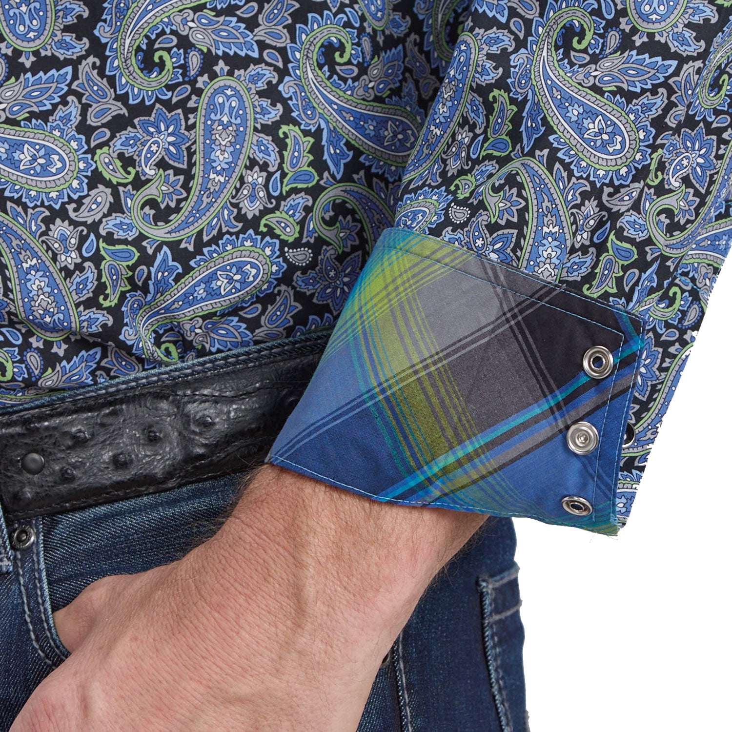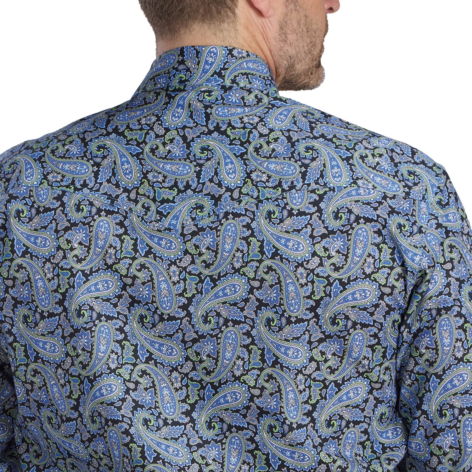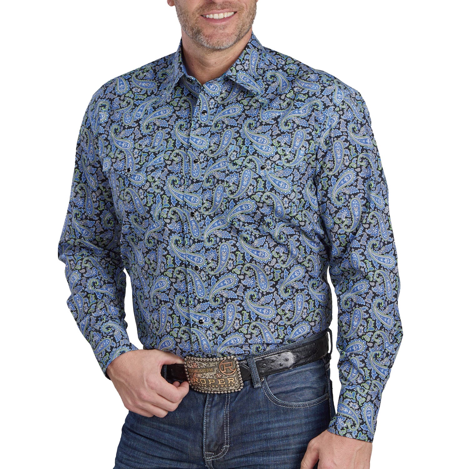 Men’s Snap Allover Print Shirt – Bring classic Western style to your wardrobe with this long-sleeve shirt featuring a striking cobalt paisley print and a comfortable, versatile fit.• 100% cotton for softness and breathability