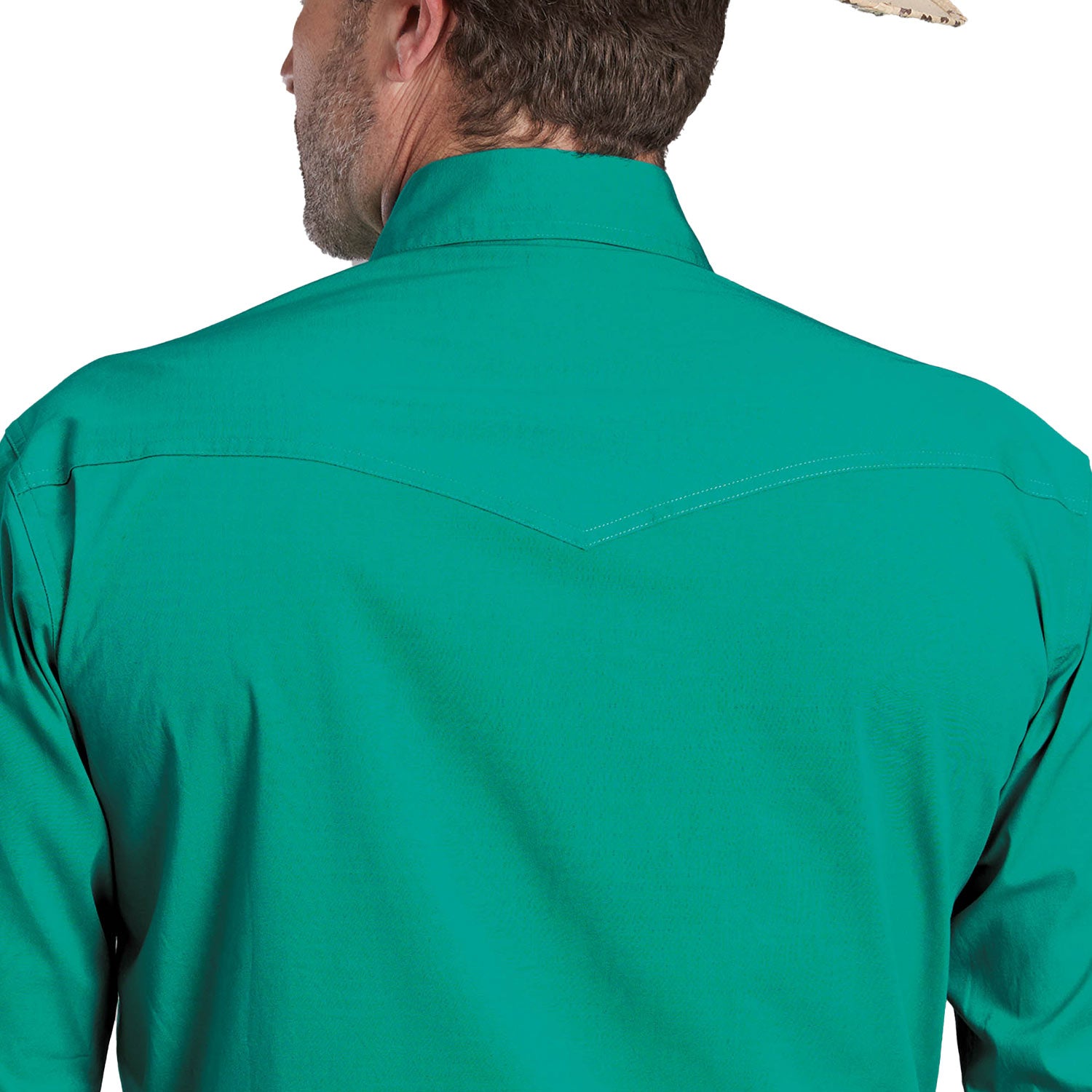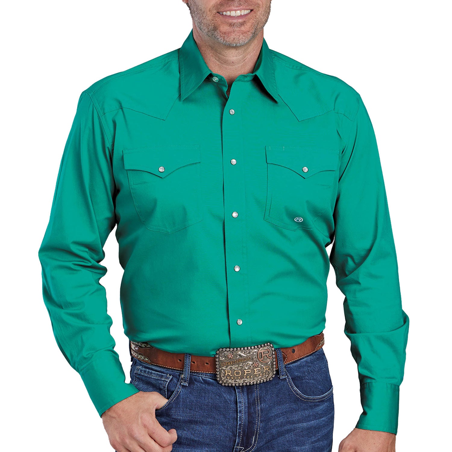 Roper Men’s Amarillo Collection – Stretch. Men’s Long Sleeve Snap Solid Poplin Shirt – Jade Green – A clean, modern Western essential with stretch comfort and classic snap details.
