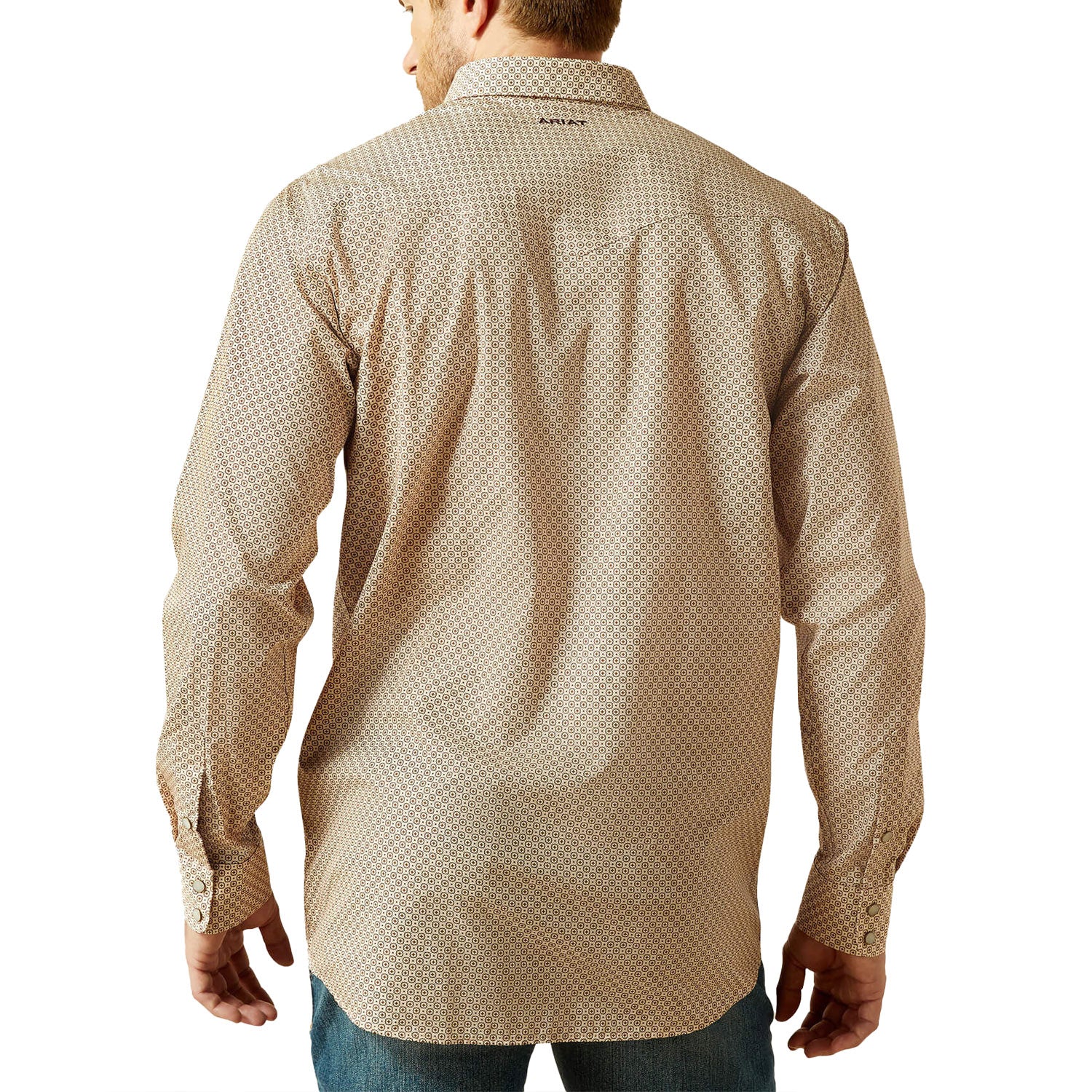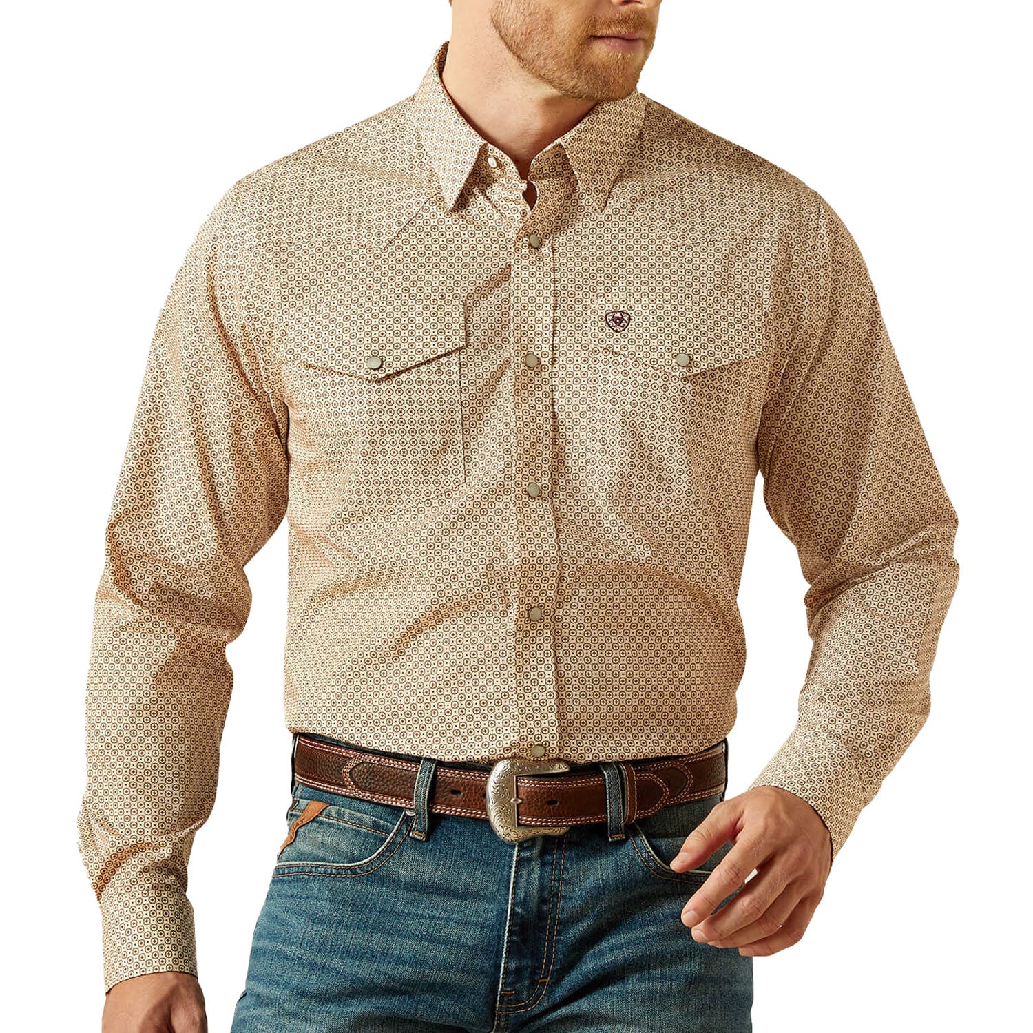 Wrinkle Free Eddie Fitted Shirt – Off WhiteStay crisp from dawn to dusk with the Ariat Eddie Fitted Shirt. Designed with a wrinkle-free finish and taped seams, this shirt keeps a smooth, polished look through work, travel, and everyday wear—no ironing required. Classic Western styling, pearl snaps, and signature Ariat® details give it an authentic touch, while the slim fit with added length keeps you covered and comfortable on the move. Adjustable cuffs and a hidden pen slot in the left chest pocket add convenience for long days.