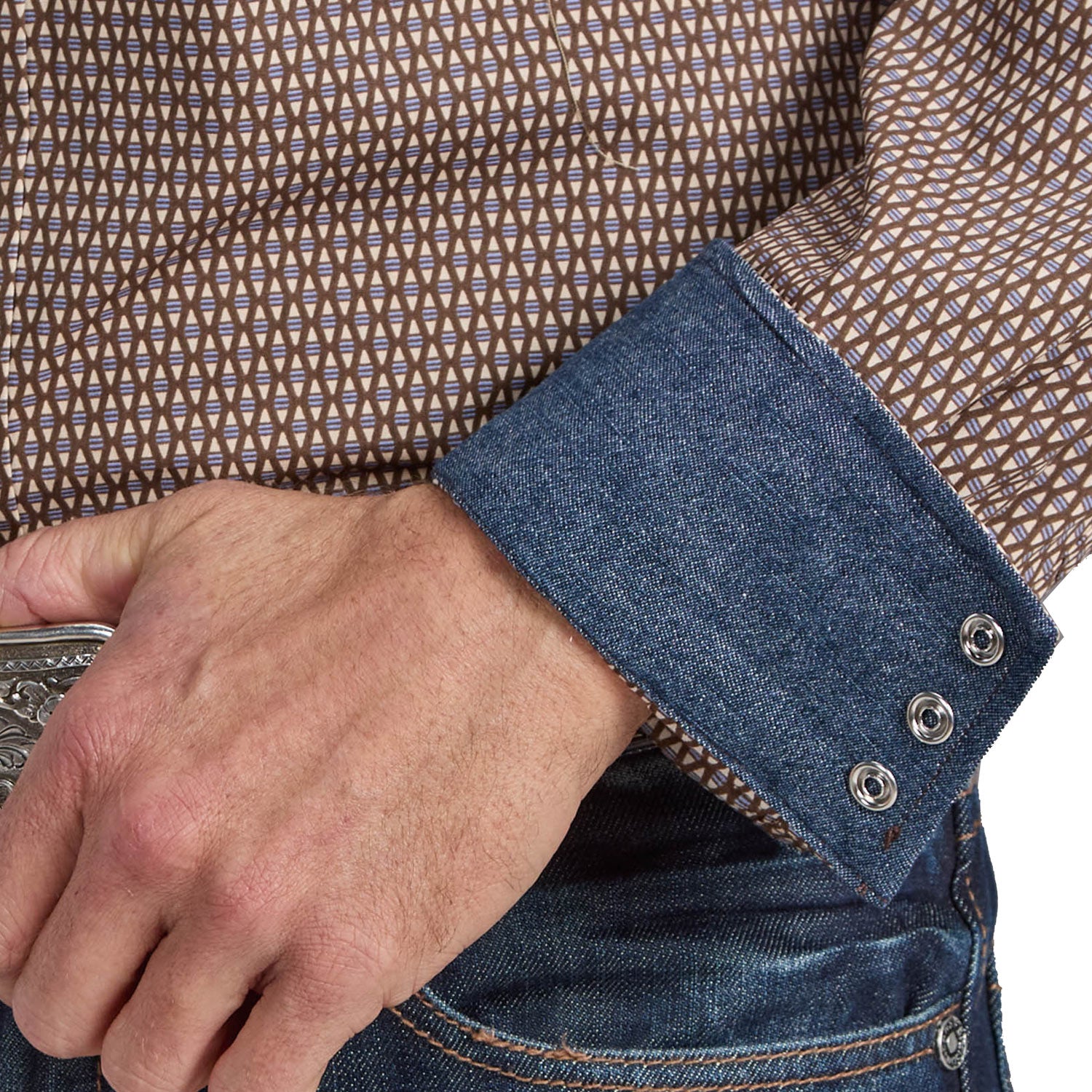 Men’s Snap 2 Pocket Print Shirt – A refined Western classic with an allover blue line diamond print, blending rugged charm with polished detail.• 100% cotton poplin for breathable comfort