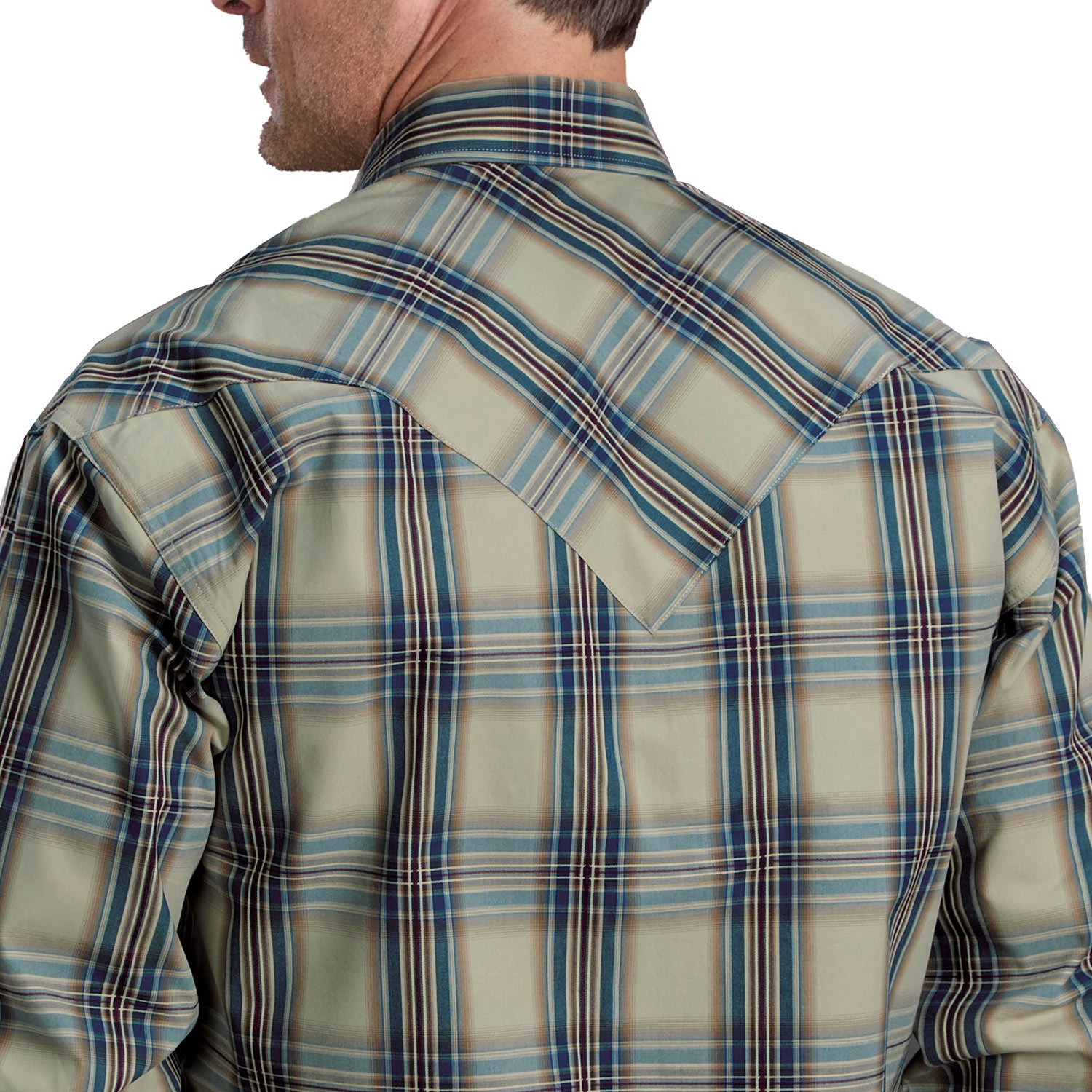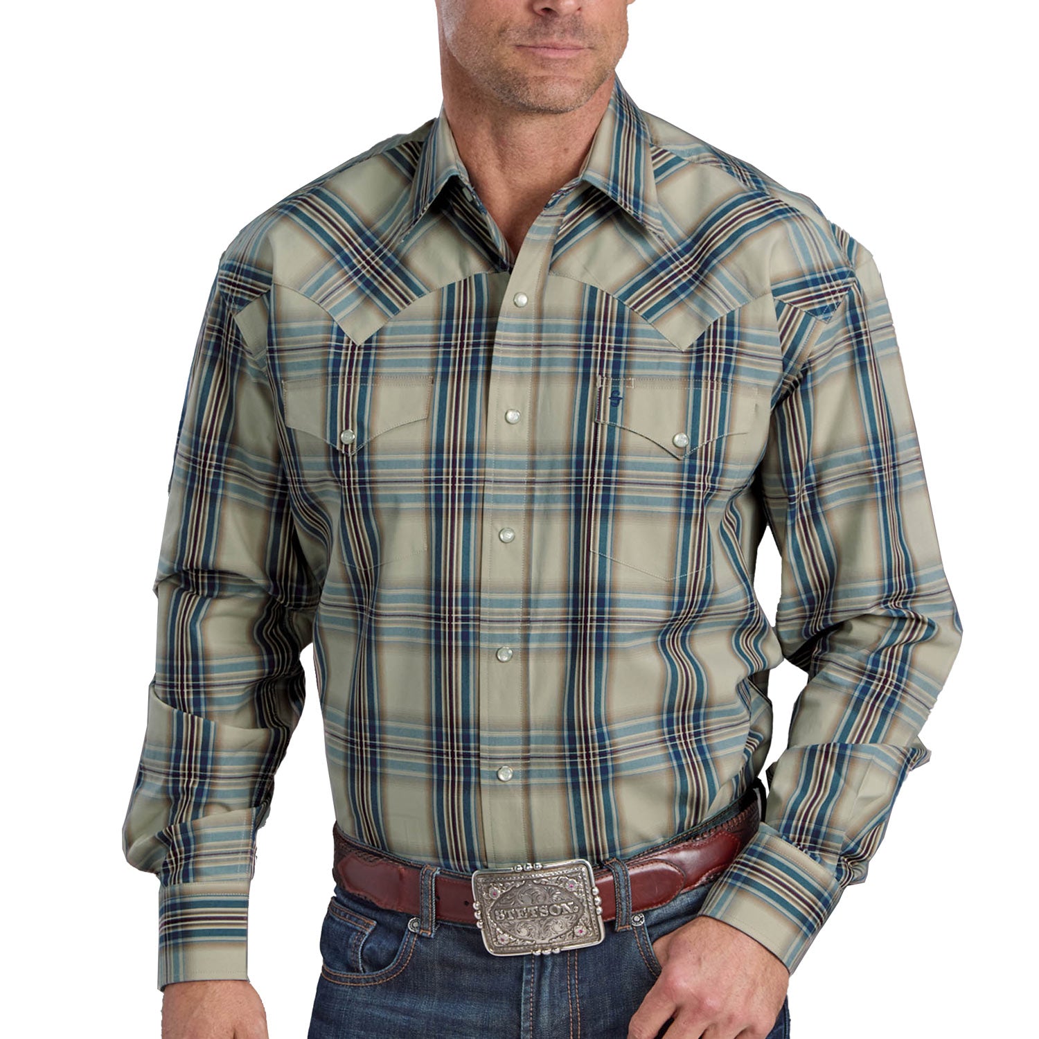 Vintage Indigo Plaid Long Sleeve Snap Shirt – BlueThis Stetson Vintage Indigo Plaid Shirt blends timeless Western style with refined detailing. Crafted from 100% yarn-dyed cotton, it features a classic plaid pattern accented by satin stitching for a polished look. The ultra-deep curved back yoke and denim-trimmed interior add subtle character, while pearl logo snaps bring a touch of Stetson tradition. Finished with Stetson embroidery on the chest and sleeve placket, this regular-fit shirt is built for everyday comfort and Western authenticity.