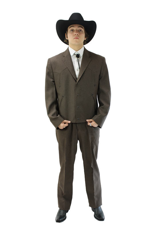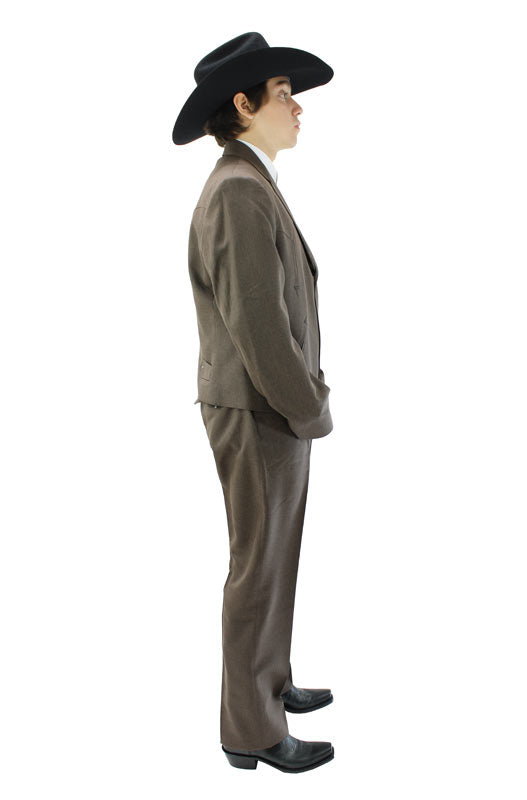 TCO-201 Cafe Traje ToledoInstantly recognizable and undeniably bold, this Brown Traje Estilo Vaquero Corto from Leon Imports blends classic norteño influence with a modern, sharp silhouette. Crafted from durable, easy-wear suiting fabric, this set is designed to handle long nights, big moments, and frequent use. Smooth lining ensures all-day comfort, while the structured Western styling delivers an authentic and commanding look. Includes both the jacket and matching trousers—just add your own shirt and accessories to complete your signature outfit.