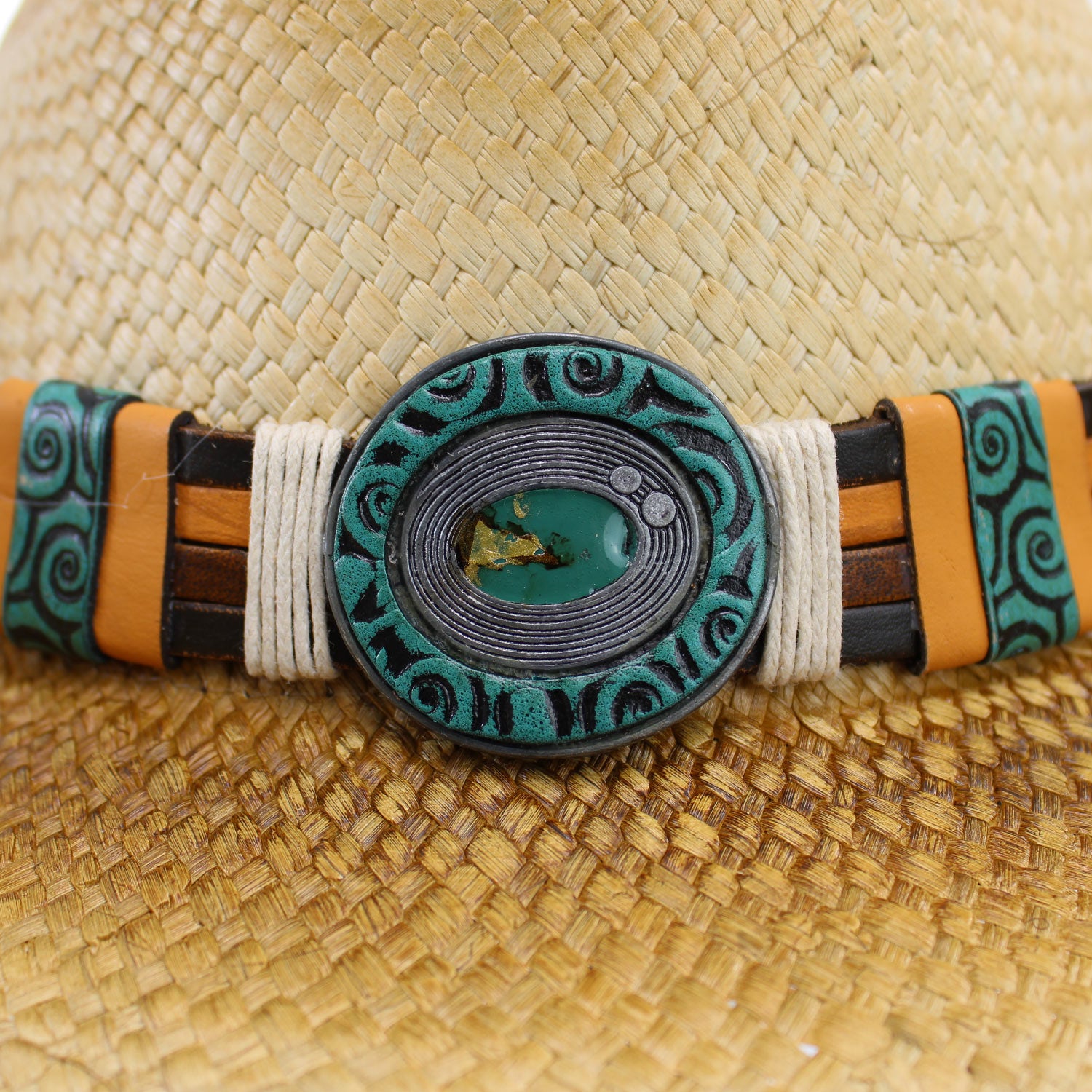 •Color: Natural straw with turquoise accent