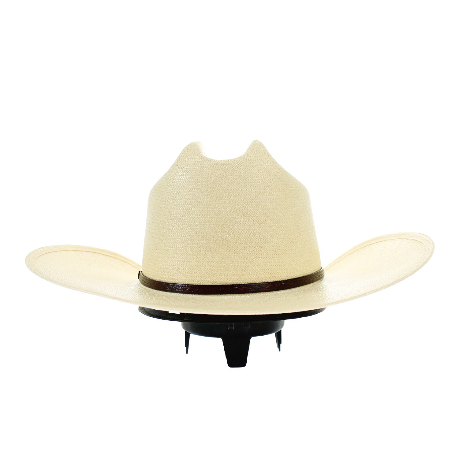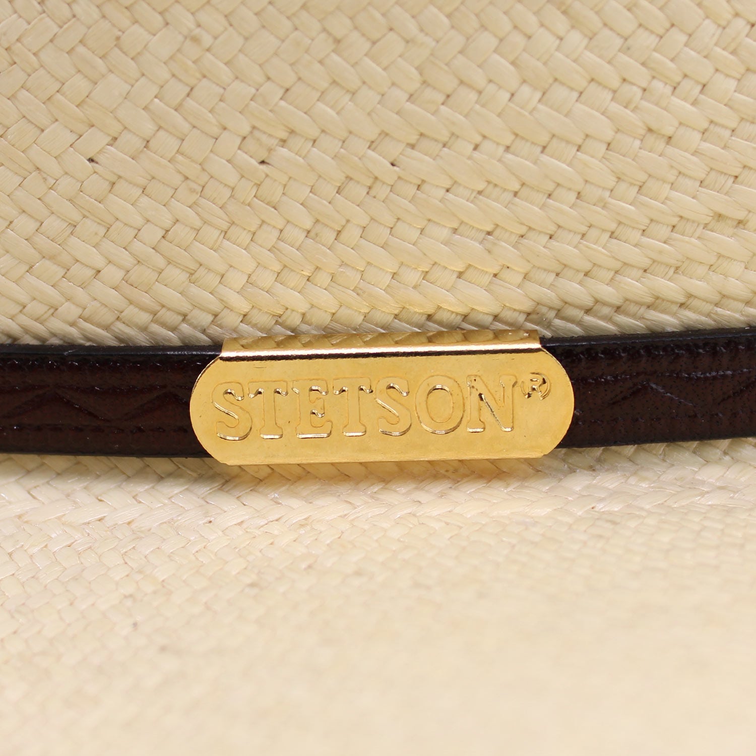 El Fino Panama HatA true work of art, the Stetson El Fino blends timeless Western style with the elegance of Grade 20 Panama straw. Handwoven strand by strand in Ecuador and finished in Texas, this ultra-premium hat offers a smooth, fabric-like texture and lightweight resilience. Its 4 1/8" cattleman crown and 4 1/4" brim provide a classic profile, while the tooled leather hatband with a gold-tone Stetson pin adds a refined touch. Complete with a genuine leather sweatband, the El Fino is a testament to craftsmanship and tradition—perfect for the discerning cowboy.