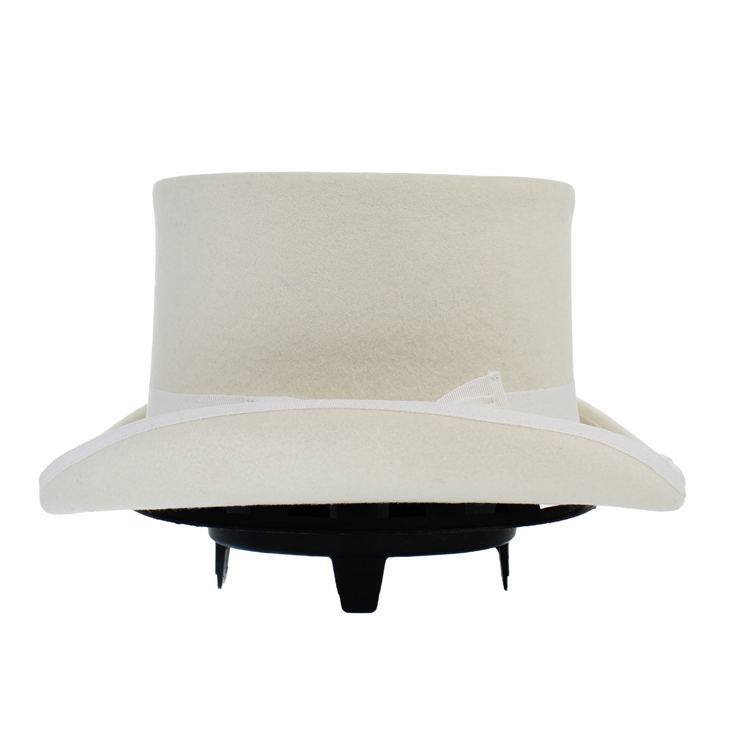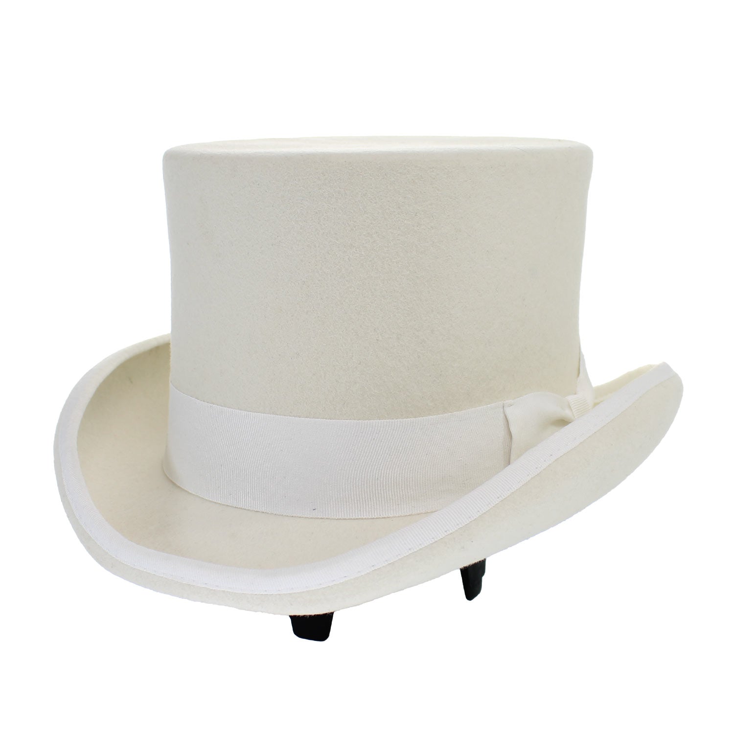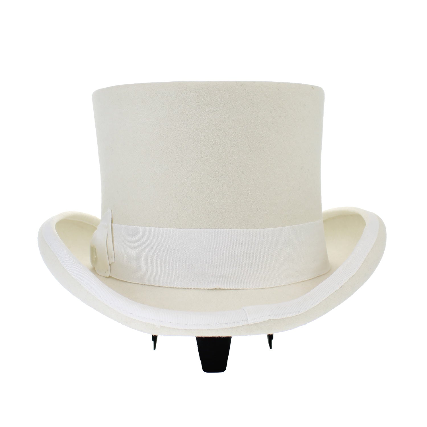 Majestic | Men’s Wool Top Hat with Carriage Hat BandA timeless symbol of sophistication, the Majestic Top Hat is crafted from lightweight wool felt for a refined look and comfortable wear. Featuring a tall 5” crown and a 2” bound brim, this top hat delivers striking presence with every detail. A grosgrain ribbon hatband adorned with red-dotted feathers adds a flourish of elegance, while the AHM Velcro sweatband ensures a secure fit for any occasion. Perfect for formal events or bold statement wear.