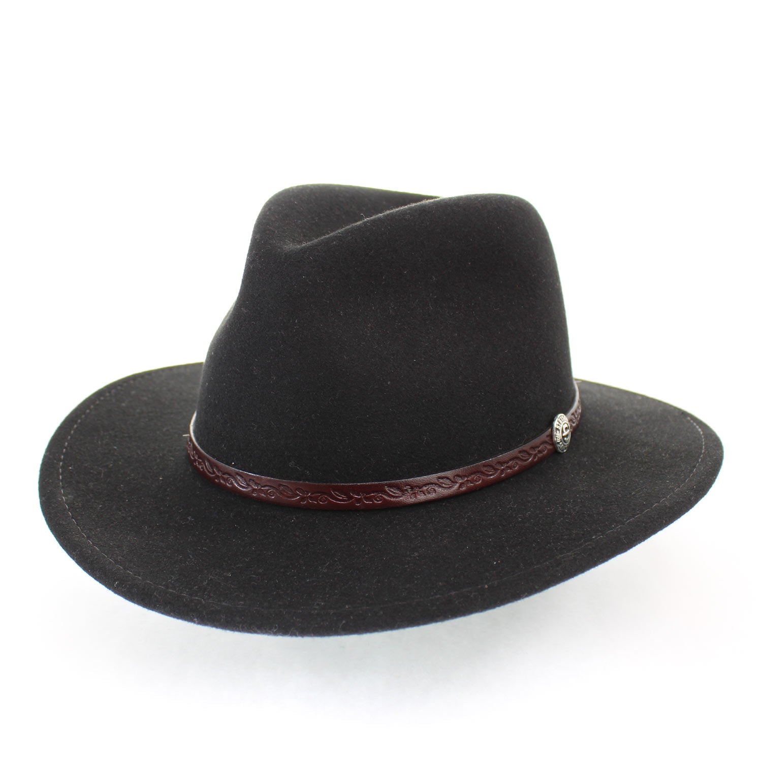 Cromwell Black Outdoor HatThe Stetson Cromwell is a versatile fedora designed for adventure, travel, and everyday wear. Handcrafted in the USA, this crushable wool felt hat is lightweight, soft, and water-repellent—built to bounce back into shape after being packed away. Its 4 1/4" center dent crown and 2 1/2" brim create a timeless silhouette, while the sleek leather hatband with metal pin adds a touch of refined Western style. Finished with a comfortable Drilex sweatband, the Cromwell is a reliable choice for both rugged outings and polished occasions.