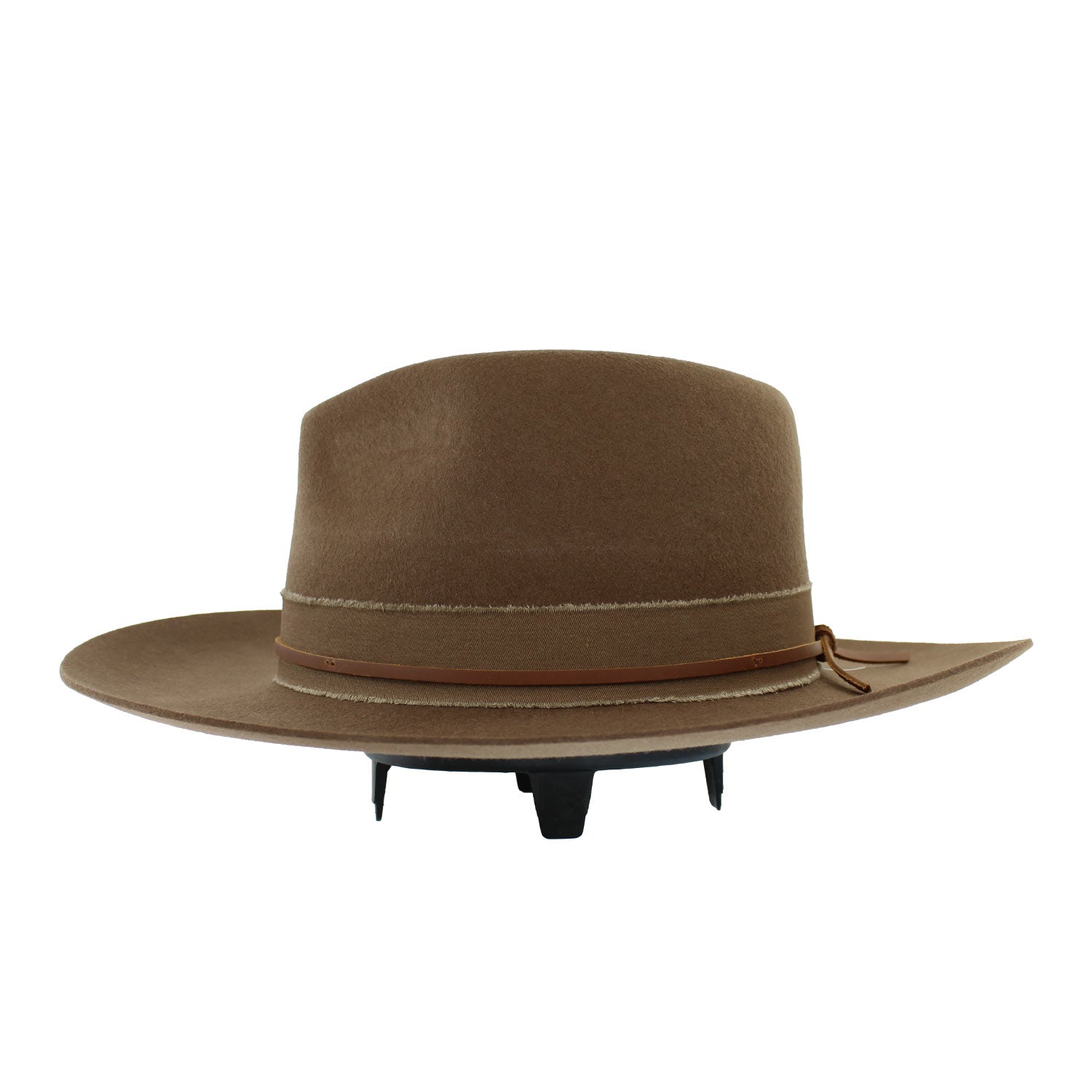 Jawa Wide Brim Felt Fedora HatThe **Jawa** brings rugged sophistication to the forefront. Crafted from firm Australian wool, this outback-inspired fedora features a 4 1/4" pinch front crown and a 3 1/2" wide brim that offers both style and shade. A frayed twill cotton hatband layered with a leather cord adds a rustic, adventurous edge, perfect for the trail or town. Designed for comfort and durability, the Jawa includes an adjustable AHM Velcro sweatband for a customized fit.