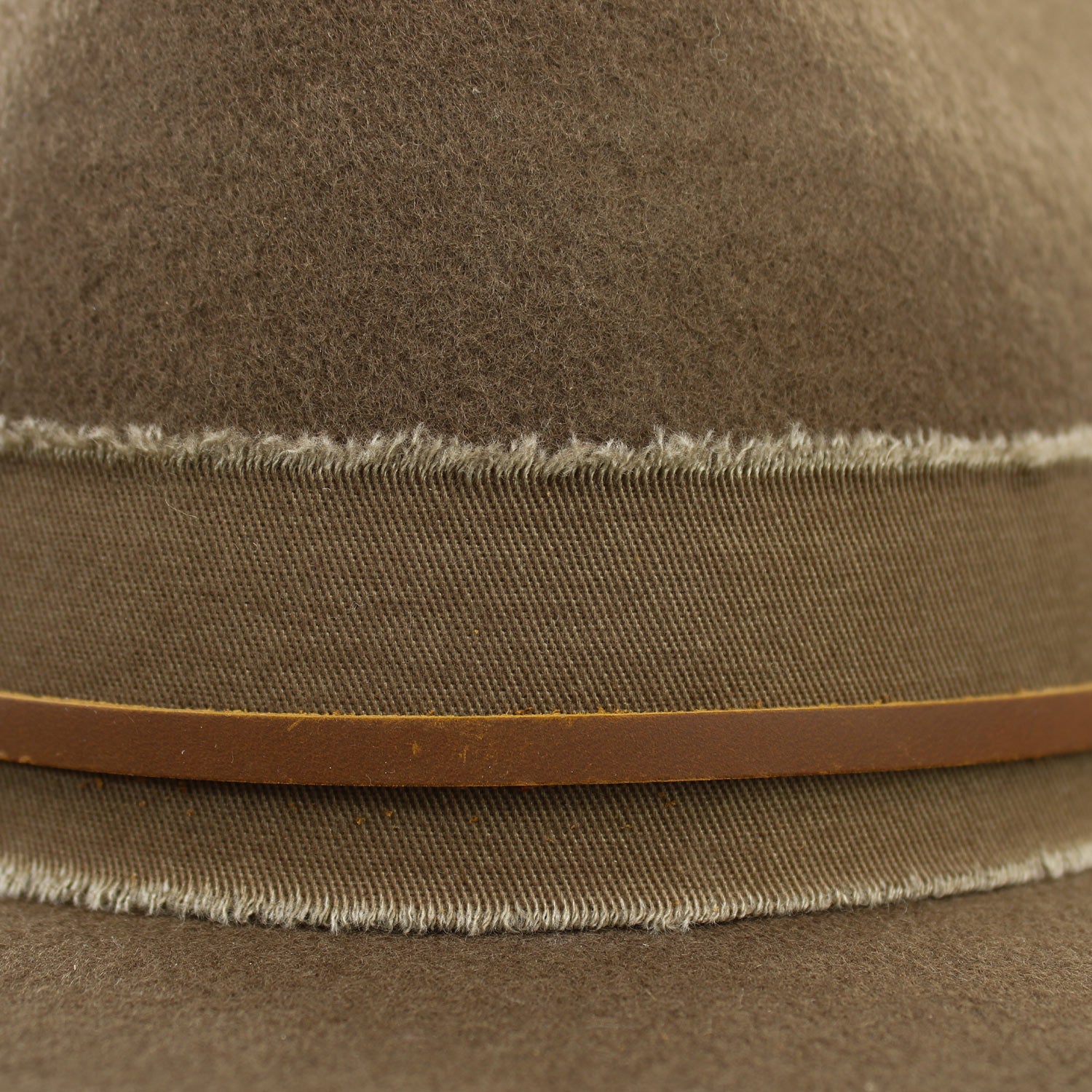 •Hatband: Frayed Twill Cotton with Leather String Cord Overlay