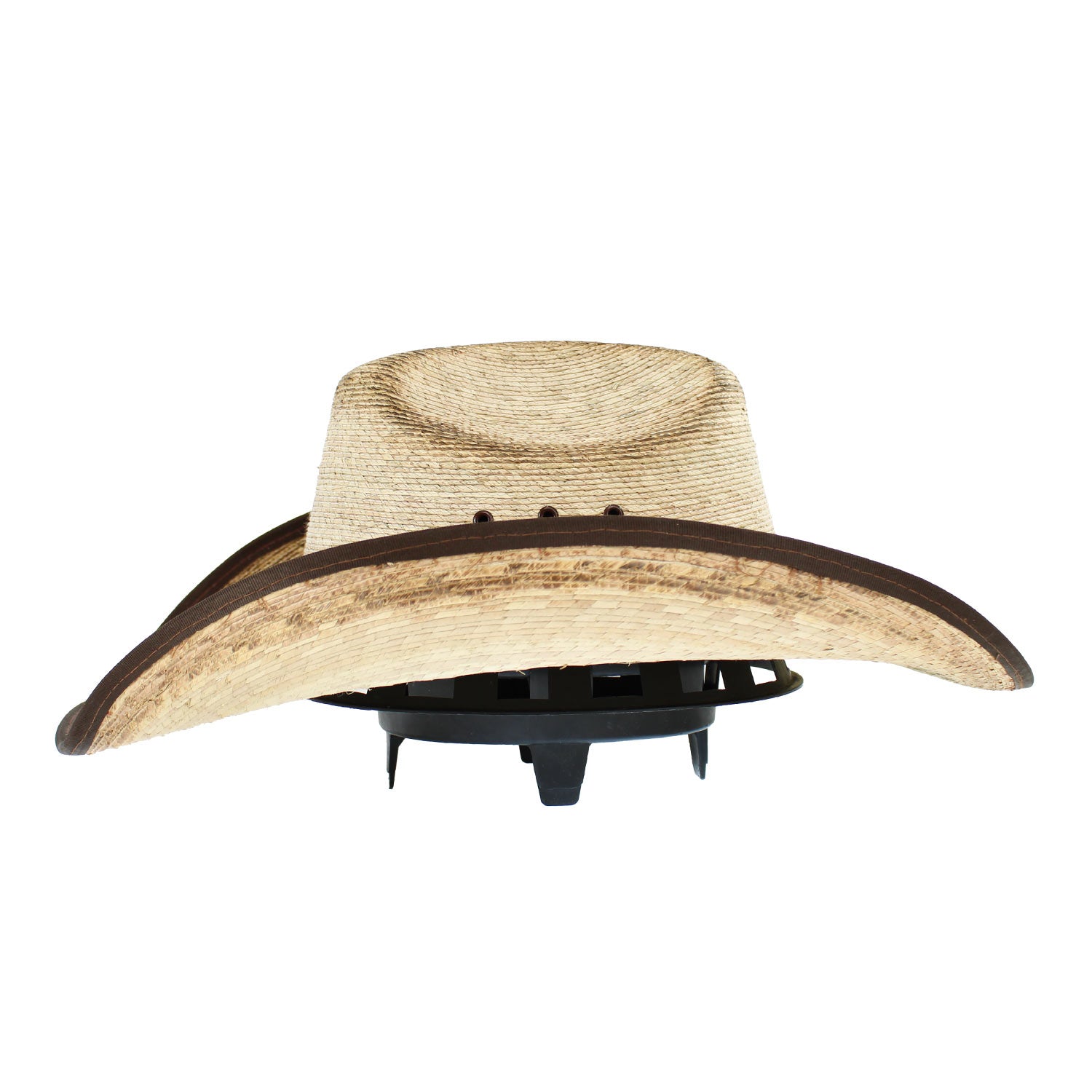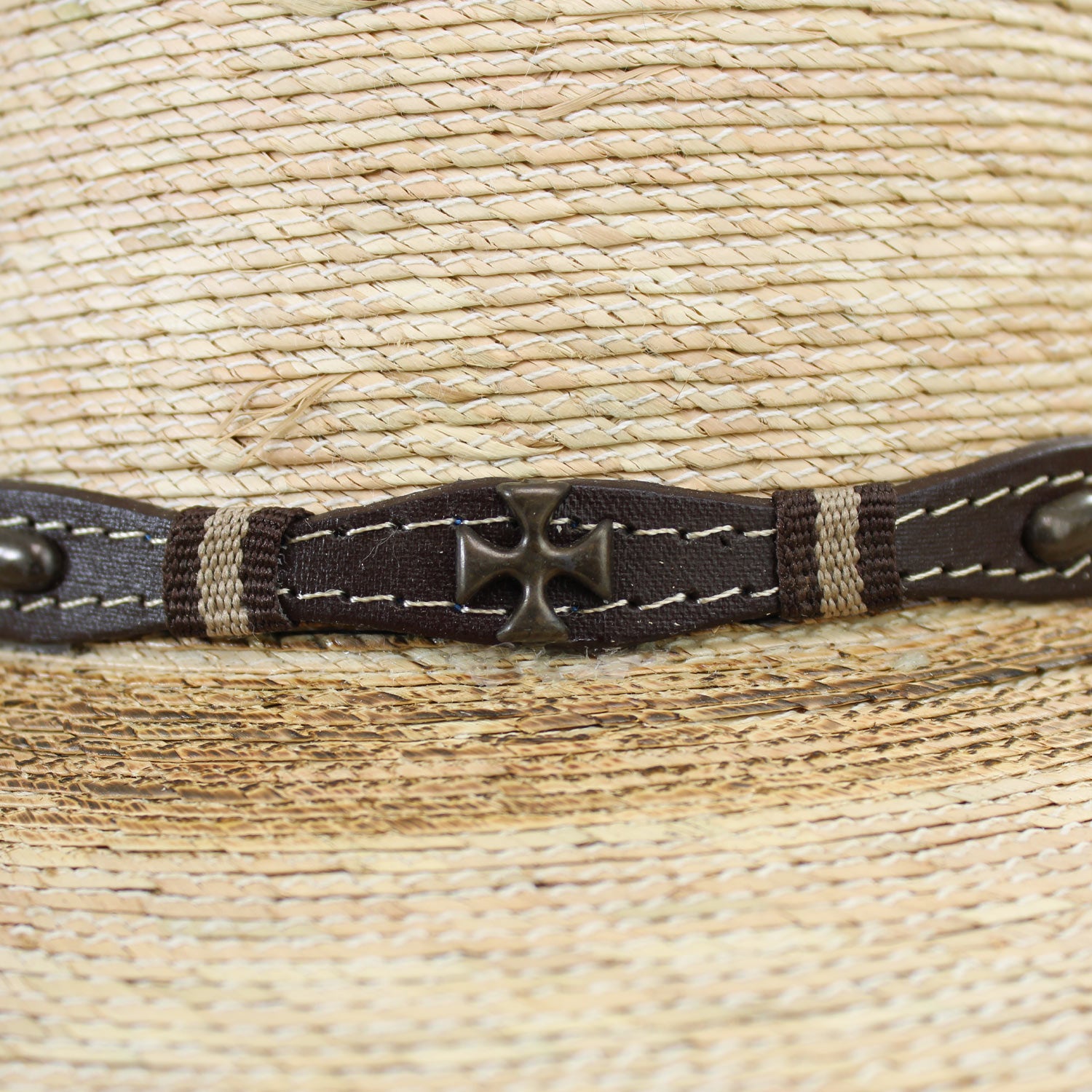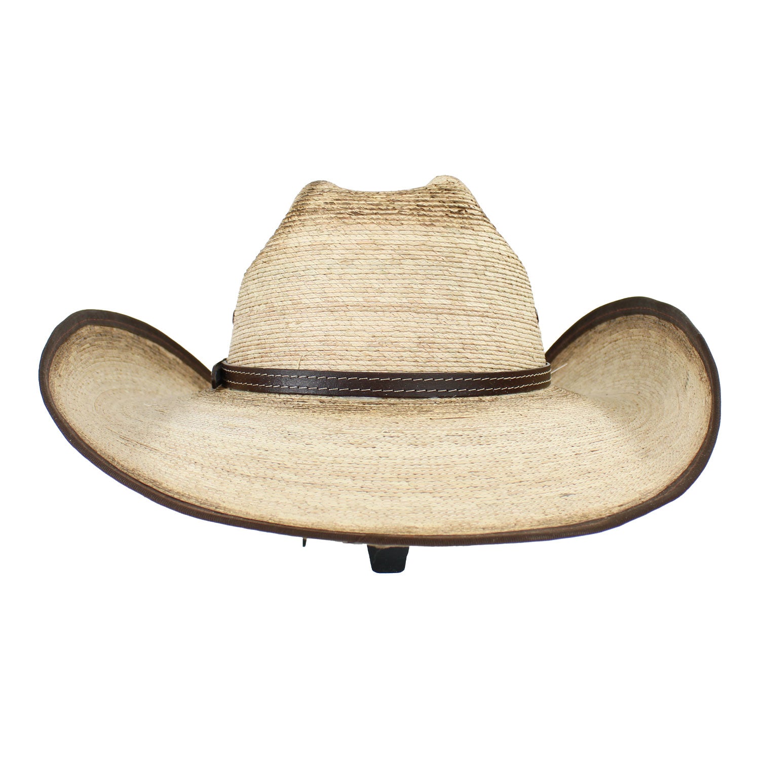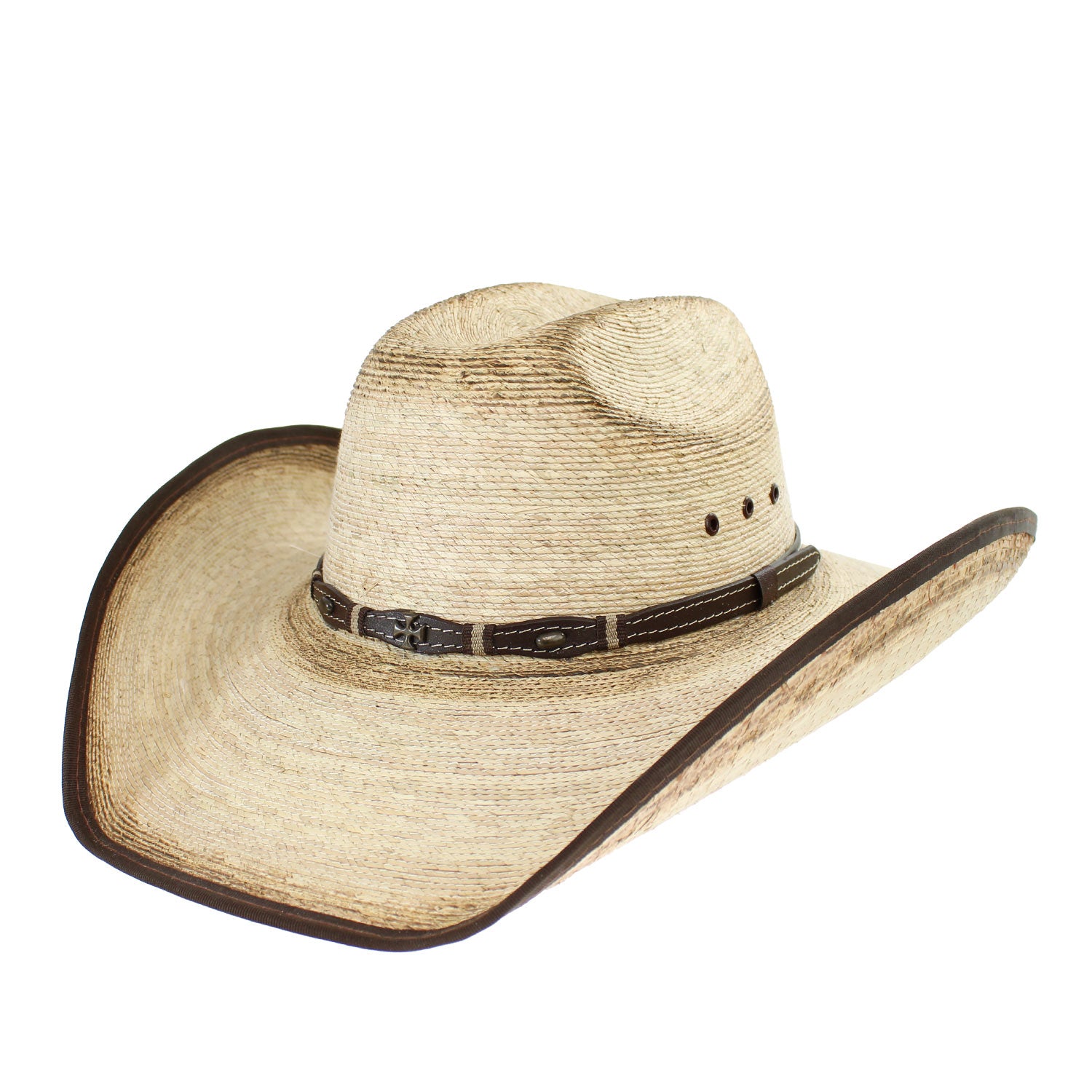Lucas Cowboy HatThe **Lucas Cowboy Hat** delivers rugged Western charm with everyday practicality. Crafted from durable midweight Mexican palm, this hat features a firm 4 1/2" crown and a wide 4 1/4" brim for classic cowboy style and reliable sun protection. A faux leather hatband detailed with conchos and metal eyelets adds bold character, while the elastic sweatband ensures a comfortable fit—perfect for long days outdoors or casual wear.