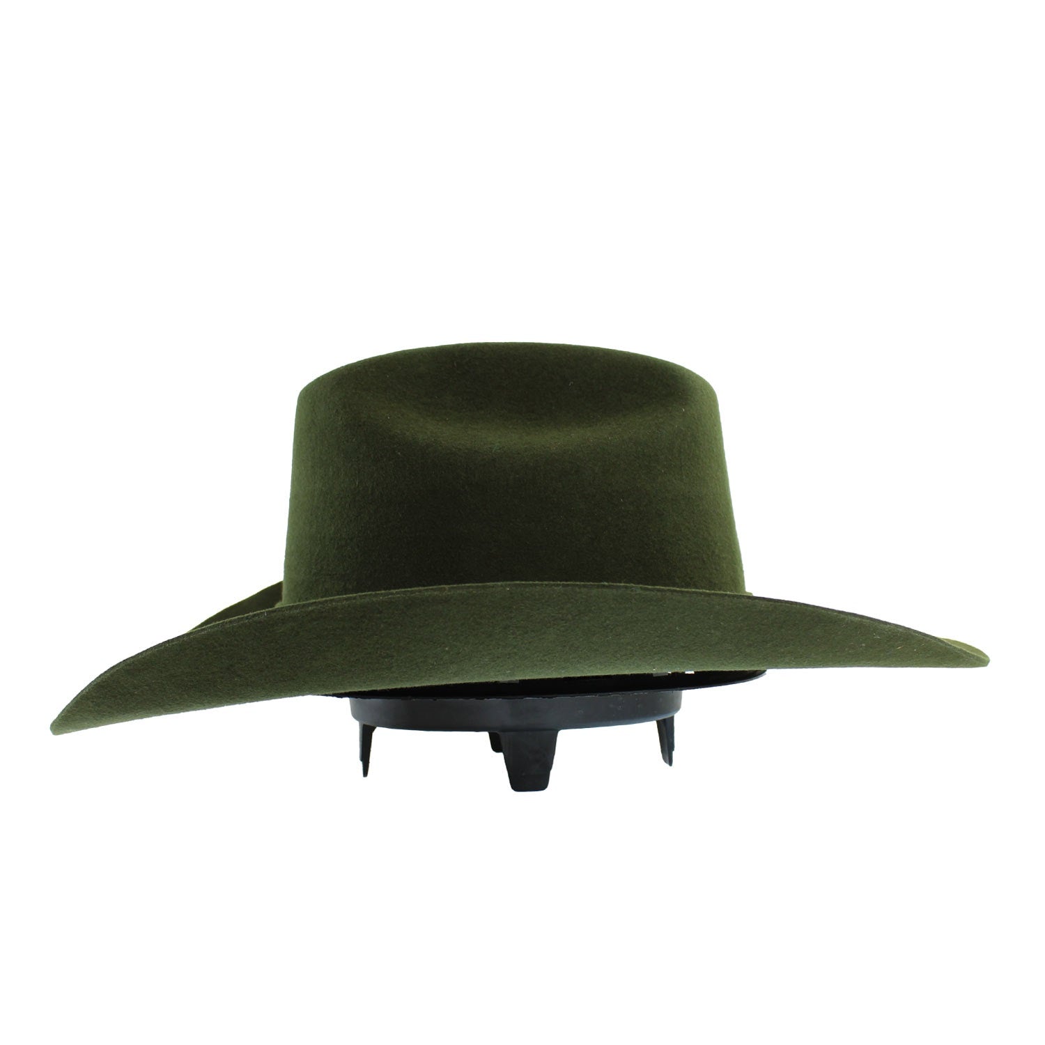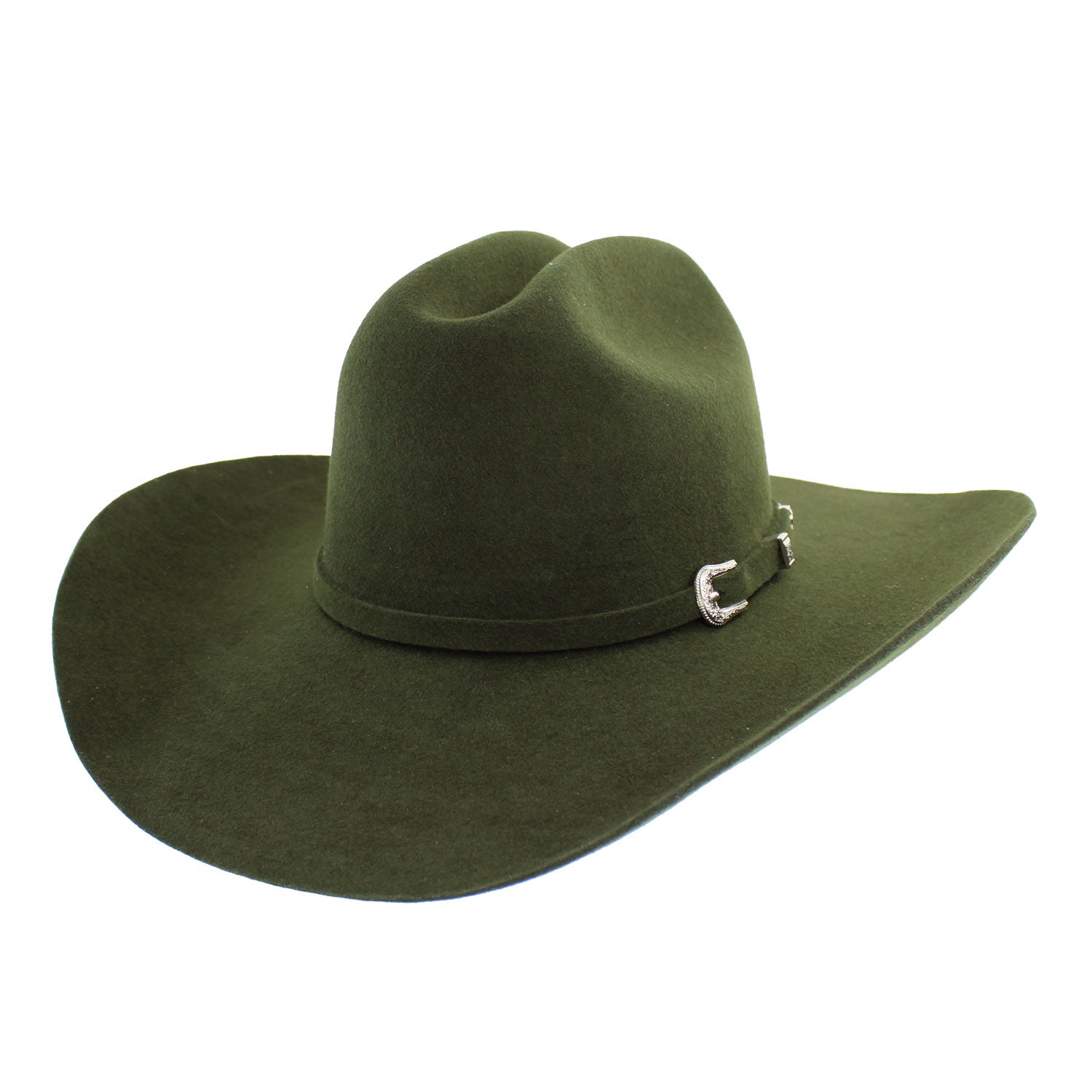Olive Cattleman Felt HatClassic Western charm meets bold, feminine flair in the Sapphire Cattleman Felt Cowgirl Hat. Crafted from midweight wool felt, this timeless piece offers structure, durability, and refined cowgirl style. Its 4" brim provides excellent sun protection, while the felt hatband with a three-piece silver buckle adds a touch of sophistication. Designed for comfort with an AHM Velcro sweatband, this hat is perfect for both everyday wear and special Western occasions.
