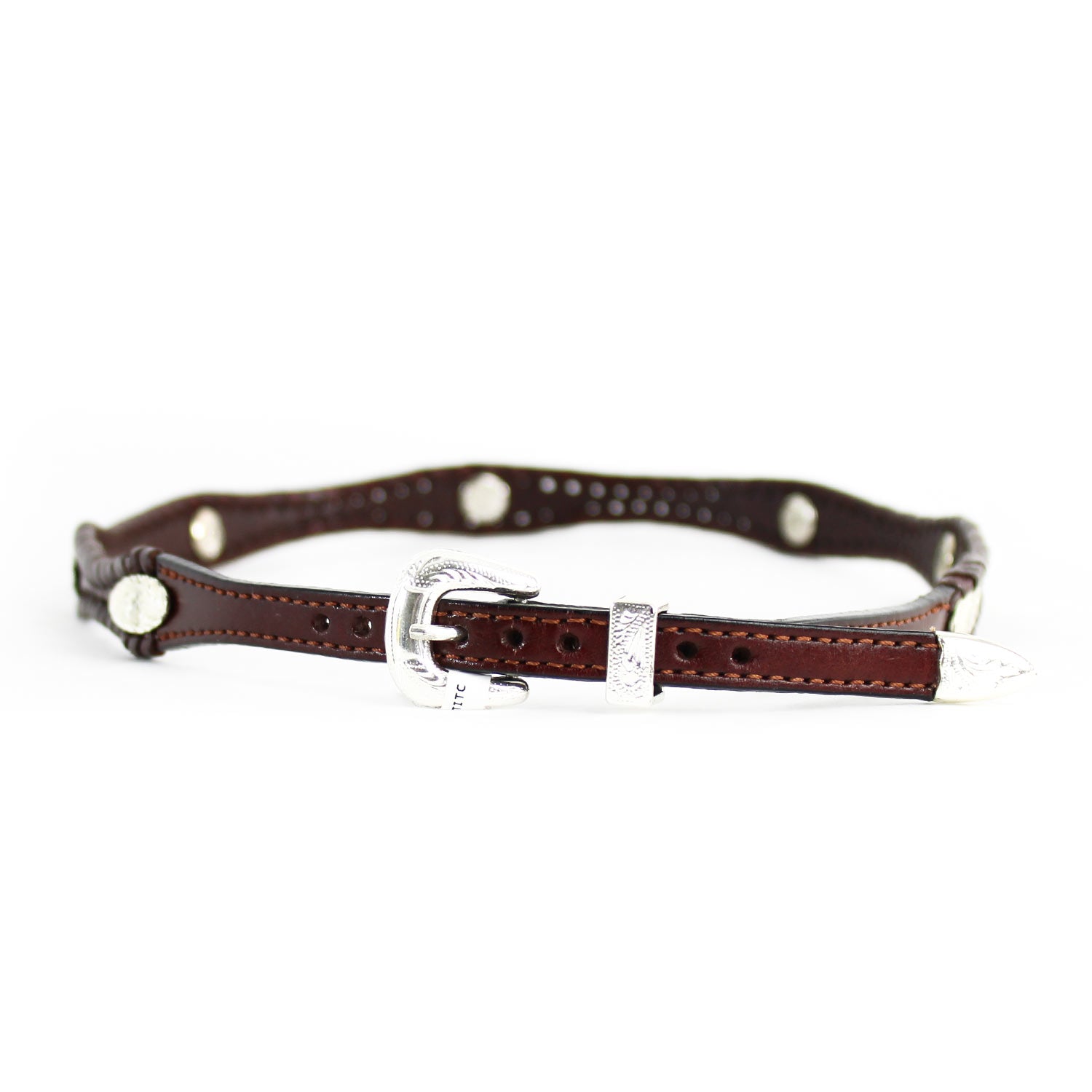 LC-23 Whip Stitch HatbandElevate your hat with the Austin Accent® LC-23 Whip Stitch Hatband, featuring scalloped leather edges and detailed whipstitching for a classic Western look. Accented with silver oval conchos and a matching buckle, this hatband combines style and functionality for a striking finish.