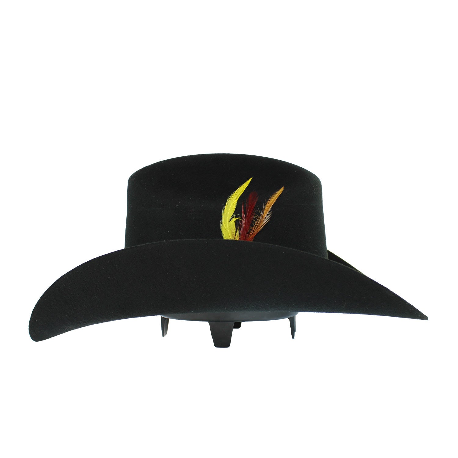 Texana Cowboy Hat 30X Malboro BlackThe **Malboro 30X** by Potrero delivers sleek Western sophistication in a timeless all-black design. Crafted from high-quality wool, this hat features a 4 1/2" cattleman crown and a 4" brim for a bold, classic silhouette. The matching black wool hatband with a 3-piece silver-tone buckle set adds a refined finishing touch, perfect for both everyday wear and special occasions.