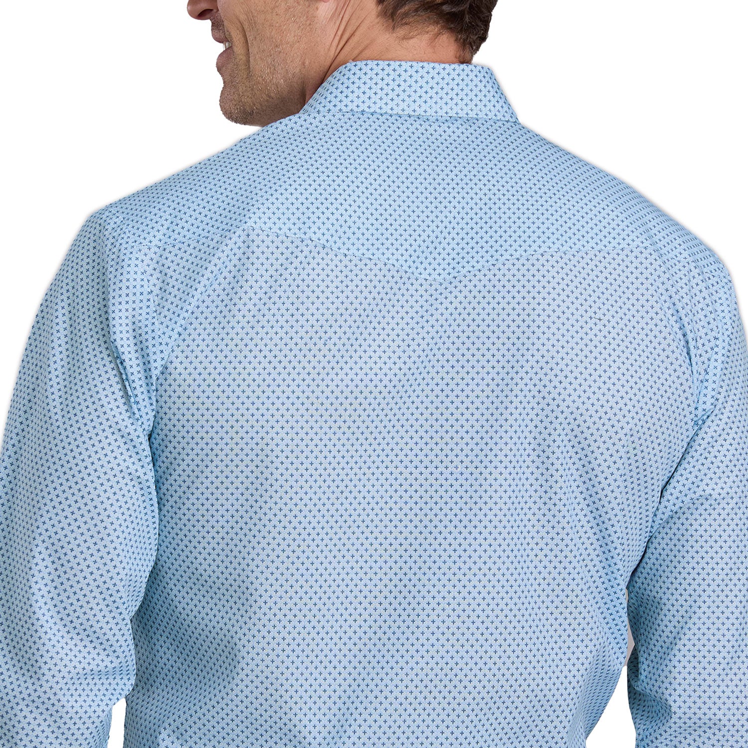55/45 Print Collection Men’s Long Sleeve Western Shirt – Blue Mini Cross PrintA classic Western shirt that blends tradition and comfort with a subtle, stylish print.
