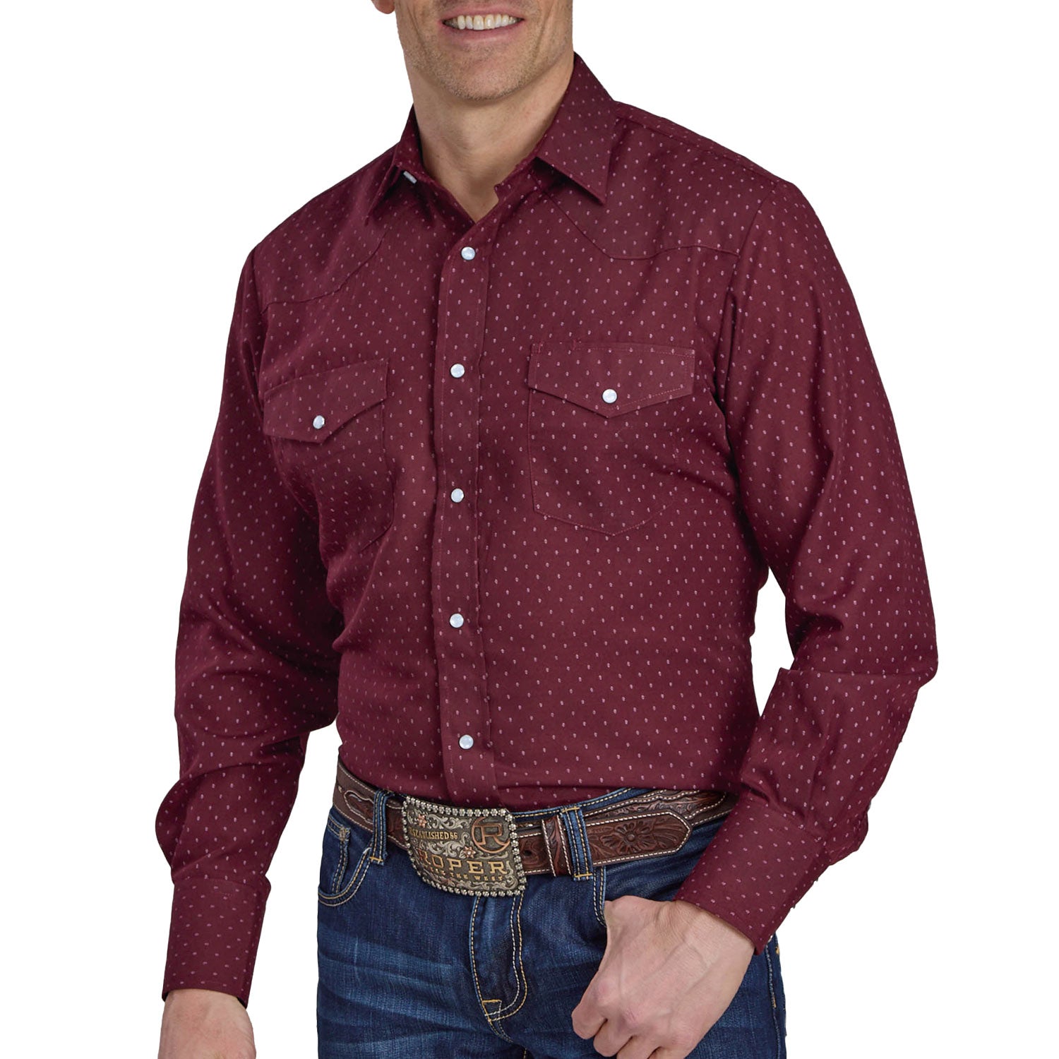 Men’s Wine Dot Print Western ShirtClassic Western tradition meets subtle sophistication with this Karman Classics 55/45 Print Shirt. Designed for comfort, durability, and style, it’s perfect for both workdays and nights out.