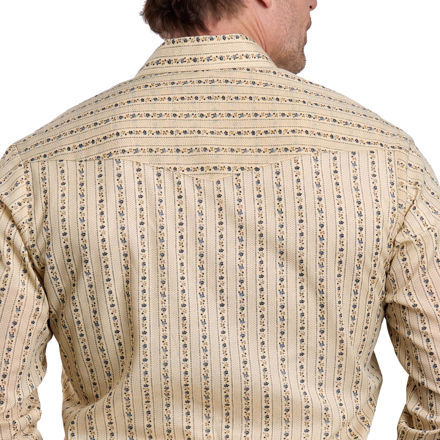 55/45 Print Men's Long Sleeve Western Style Shirt – A distinctive Western shirt featuring an eye-catching floral or wallpaper stripe print, blending classic charm with modern appeal.• Made from a 55% cotton / 45% polyester printed woven fabric for softness and durability