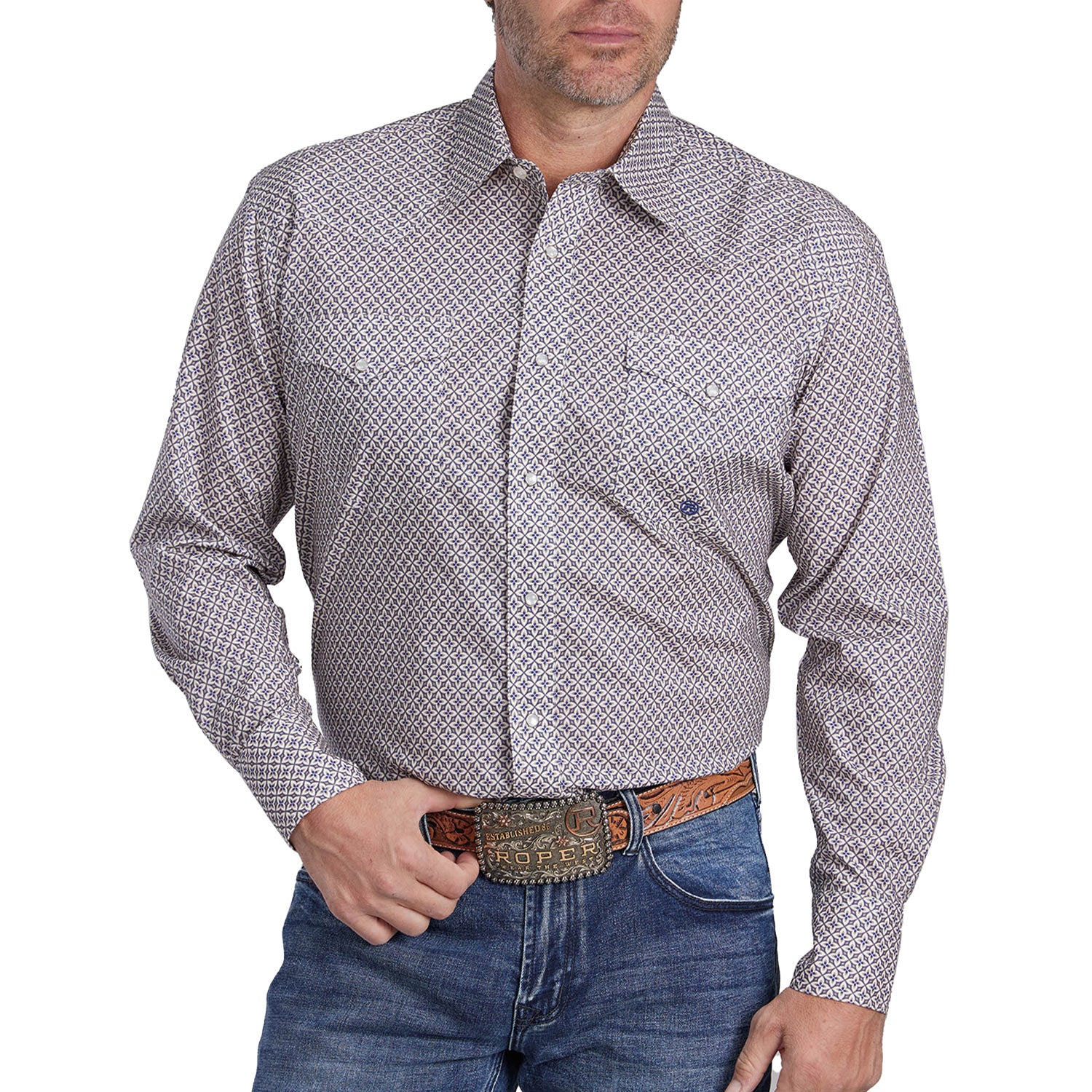 Men’s Amarillo Collection Mirage Long Sleeve Western Shirt – Pinwheel FoulardA classic Western shirt with a refined printed design, offering comfort, craftsmanship, and signature Roper style.
