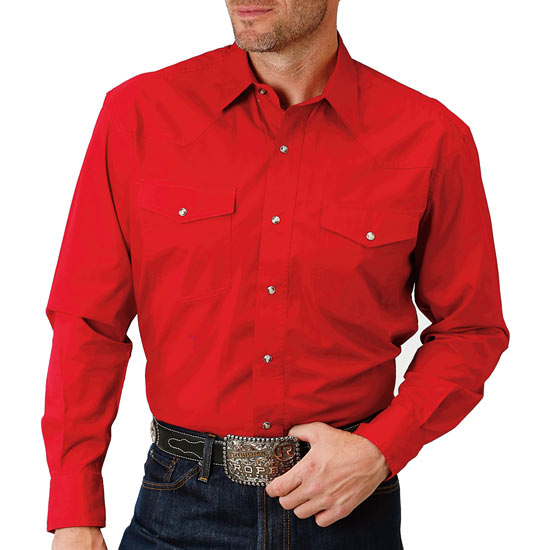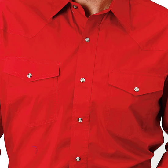 Men's Long Sleeve Poplin Solid Shirt• 1 Point Back Yoke Vergtd Snap