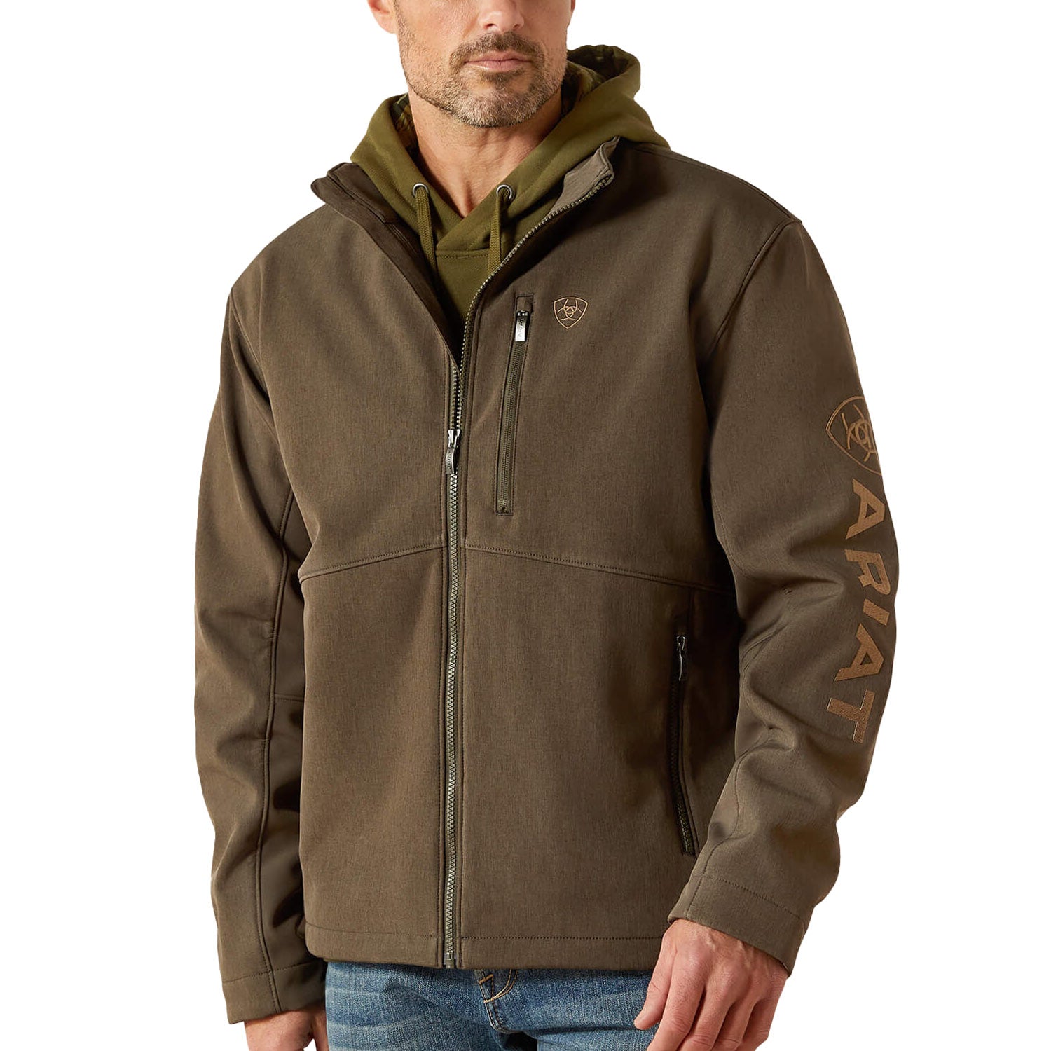 Logo Softshell Jacket – Earth Green HeatherAn Ariat icon since 2003, the Logo Softshell Jacket is a go-to layer for men who value both performance and style. Warm, lightweight, and water-resistant, this jacket offers the perfect balance of protection and comfort with a sleek design and signature Ariat logo down the sleeve.