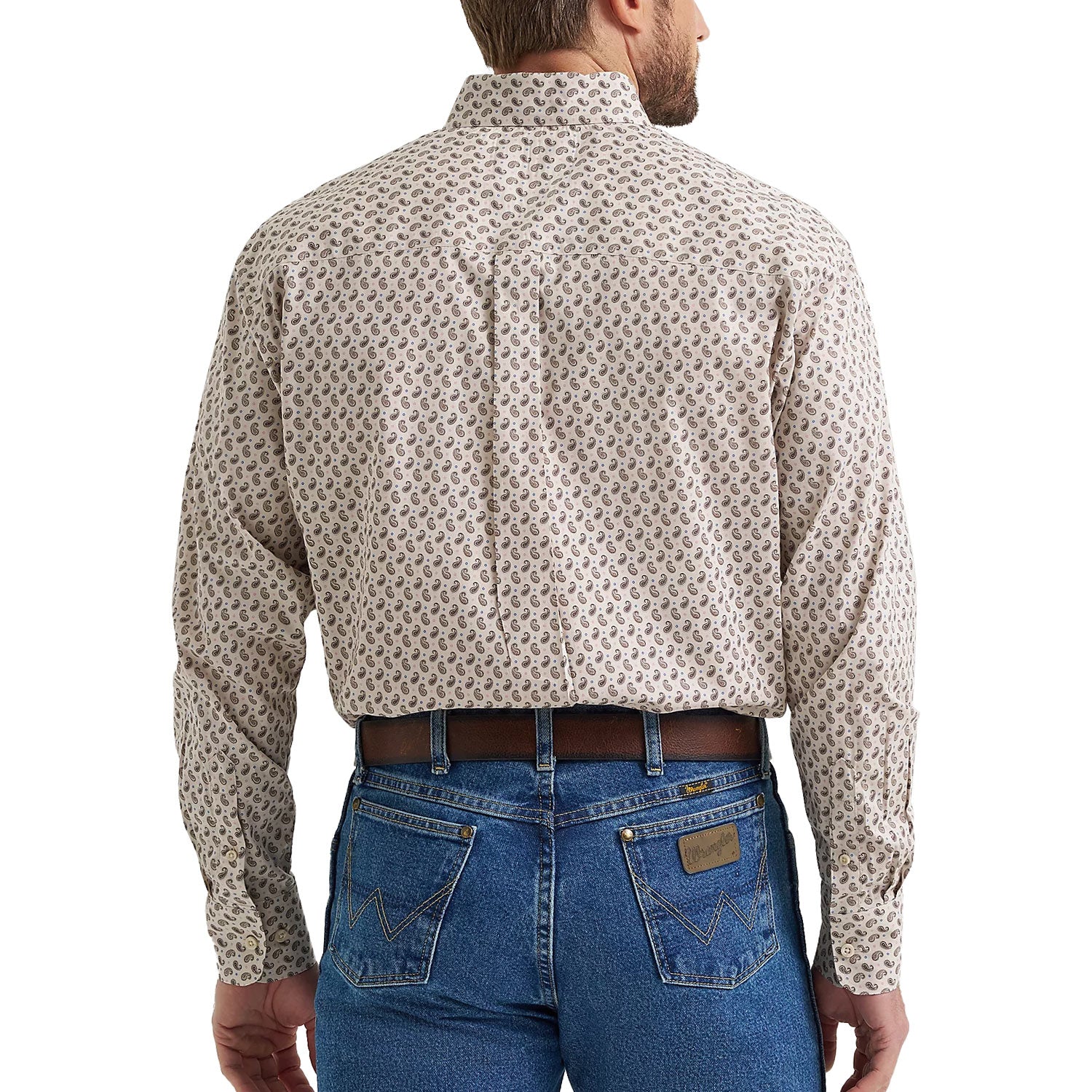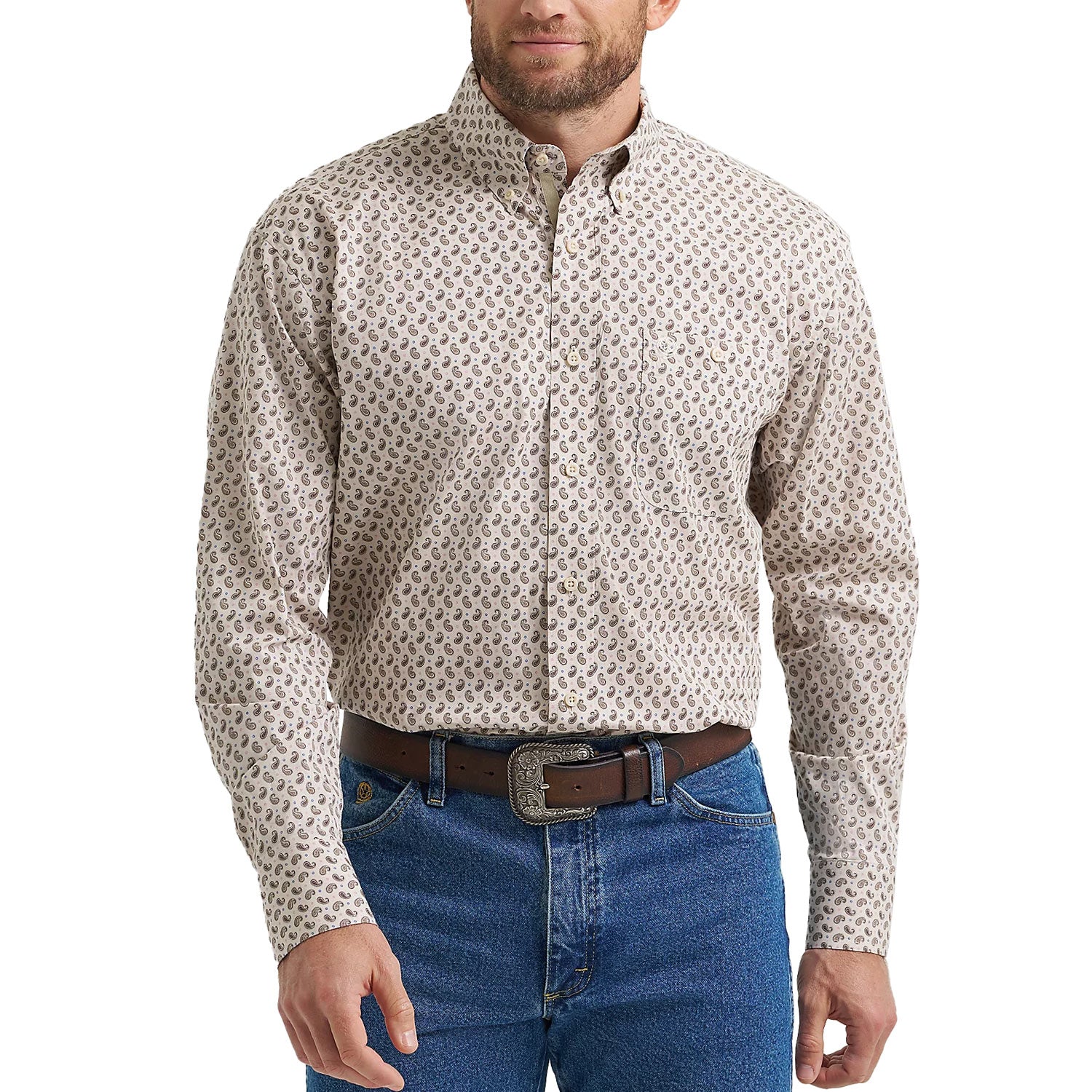 Men’s George Strait™ Long-Sleeve Button-Down One-Pocket Shirt – Pale Stone PaisleyStrait-forward style for everyday wear, this George Strait™ long-sleeve button-down shirt combines classic Western design with all-day comfort. Featuring a straight back yoke, one button-through chest pocket, and adjustable two-button cuffs, it offers a relaxed fit that provides plenty of room through the shoulders and torso.