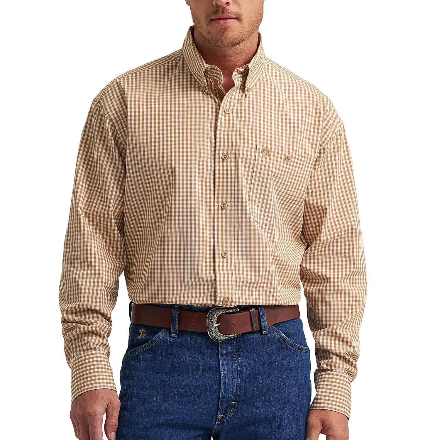 George Strait™ Long Sleeve One Pocket Button Down Shirt – Honey Oak PlaidClassic, comfortable, and unmistakably Western, the Wrangler® George Strait™ One-Pocket Button-Down Shirt delivers timeless style with everyday versatility. Designed with a relaxed fit, this long-sleeve shirt offers plenty of room through the shoulders and torso for all-day comfort. Finished in a warm Honey Oak Plaid, it’s an easy choice for work, weekends, or anywhere polished Western style is called for.