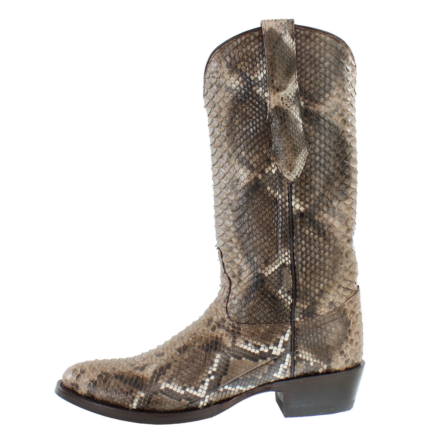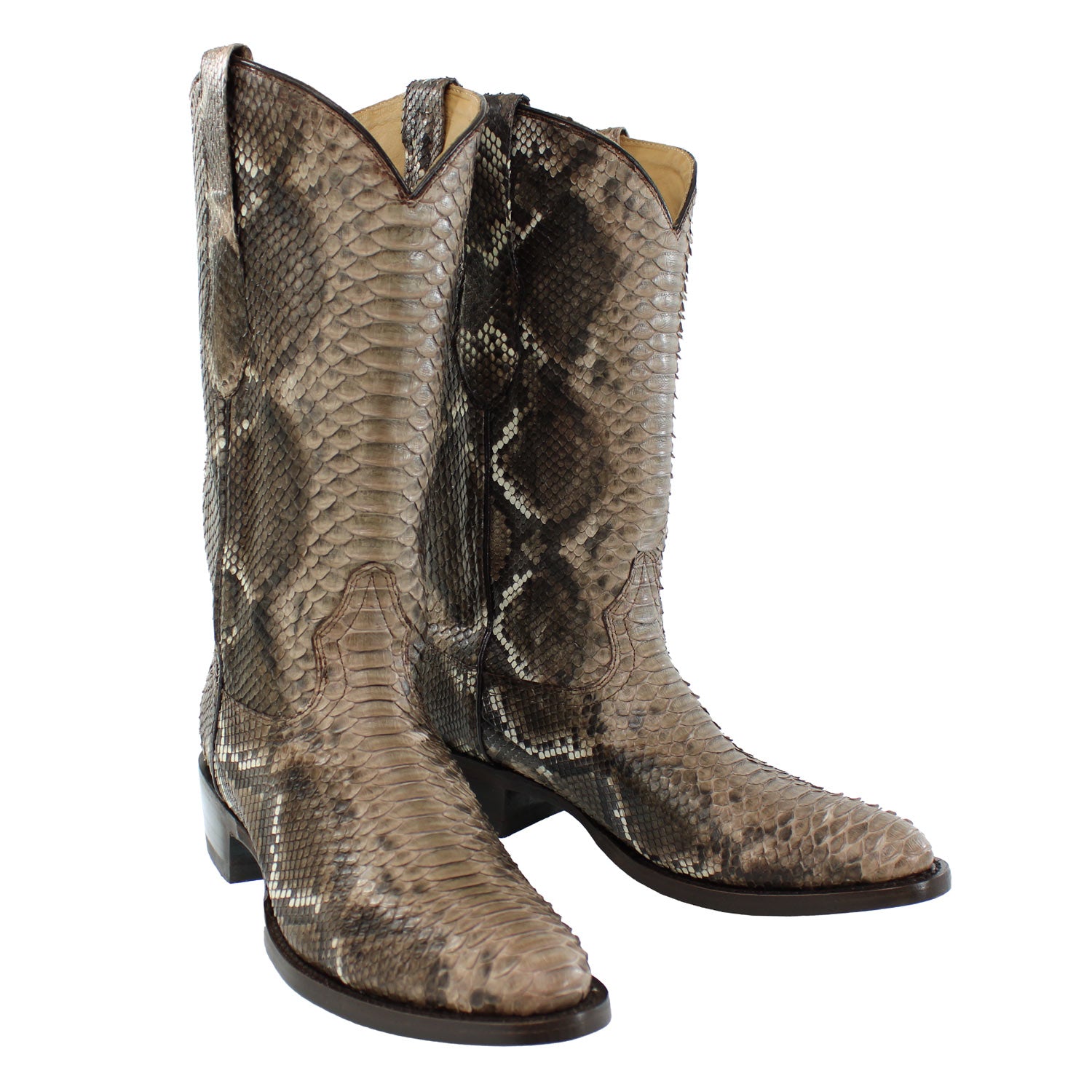 Rustic Brown Genuine Python Round Toe Cowboy BootsElevate your Western style with these luxurious Los Altos cowboy boots. Crafted from genuine python with a butter-soft lambskin lining, a cushioned leather insole, and a hand-embroidered 13" shaft, these boots combine standout texture, all-day comfort, and handcrafted durability.