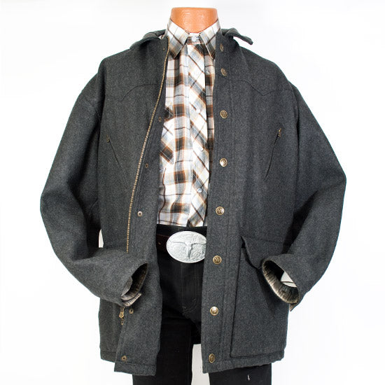 Grey outwear jacket with copper buttons and zipper in the frontMaterial: Australian Wool