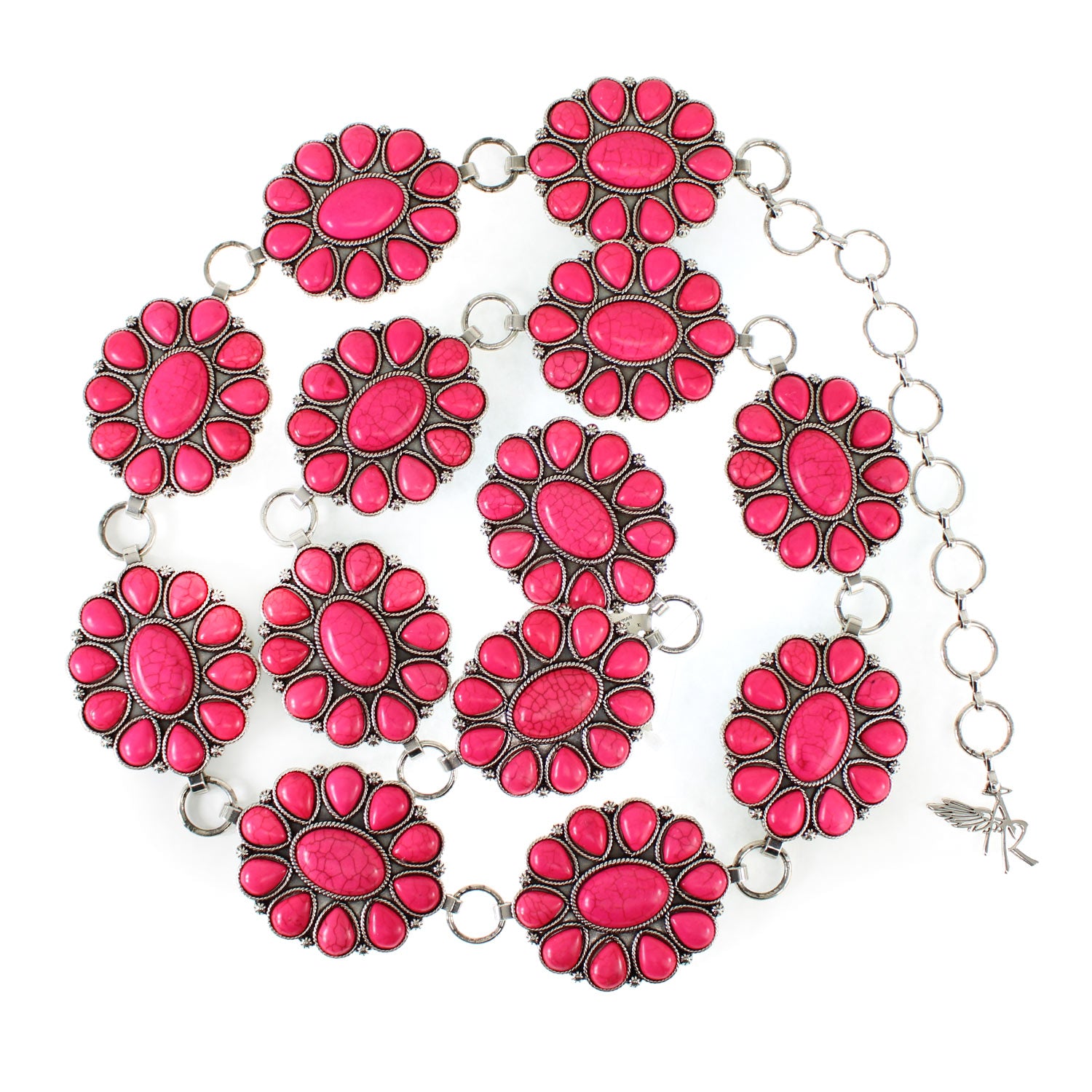 With its radiant silver finish and bright pink stones, this belt brings a soft, feminine touch to any Western look—perfect for both youth and adults who love standout accessories.