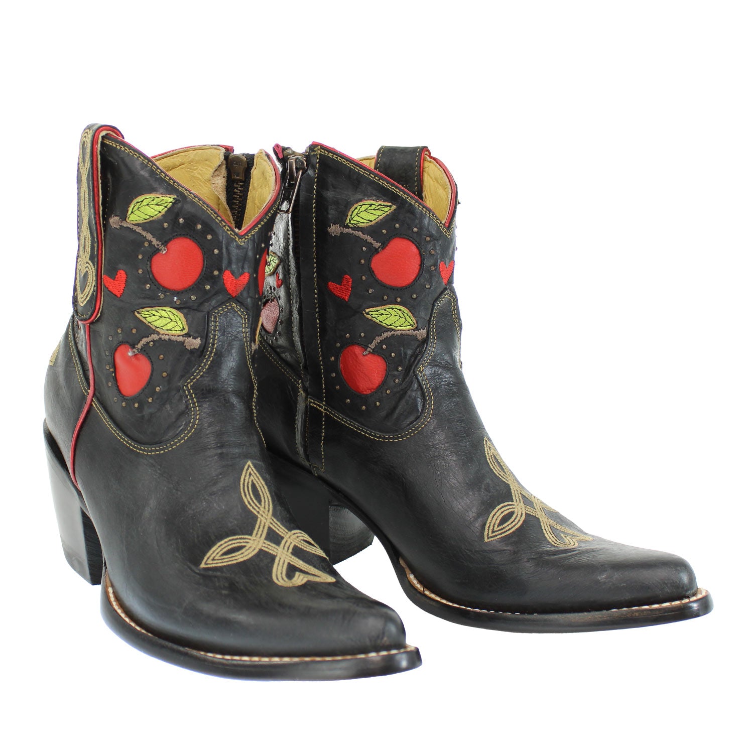 Kersen Short Women’s Black BootsThe Kersen Short in sleek black is full of charm and playful flair. Crafted from genuine cowhide leather and decorated with fun cherry motifs, these boots are more than footwear—they’re a bold, quirky fashion statement. Perfect for adding a touch of whimsy to any outfit, they’re designed for stepping out with confidence and enjoying every moment.