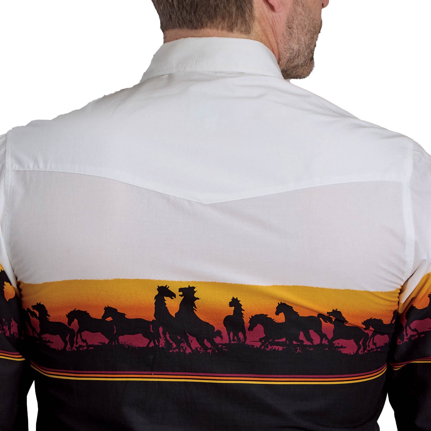 03-001-0421-0219BL -Vintage Collection Men's Scenic Print Shirt – A bold blend of artistic design and classic Western style, this shirt offers a striking visual appeal with its vintage scenic print and traditional Western elements.• Made from 100% cotton poplin for a soft, breathable, and durable feel