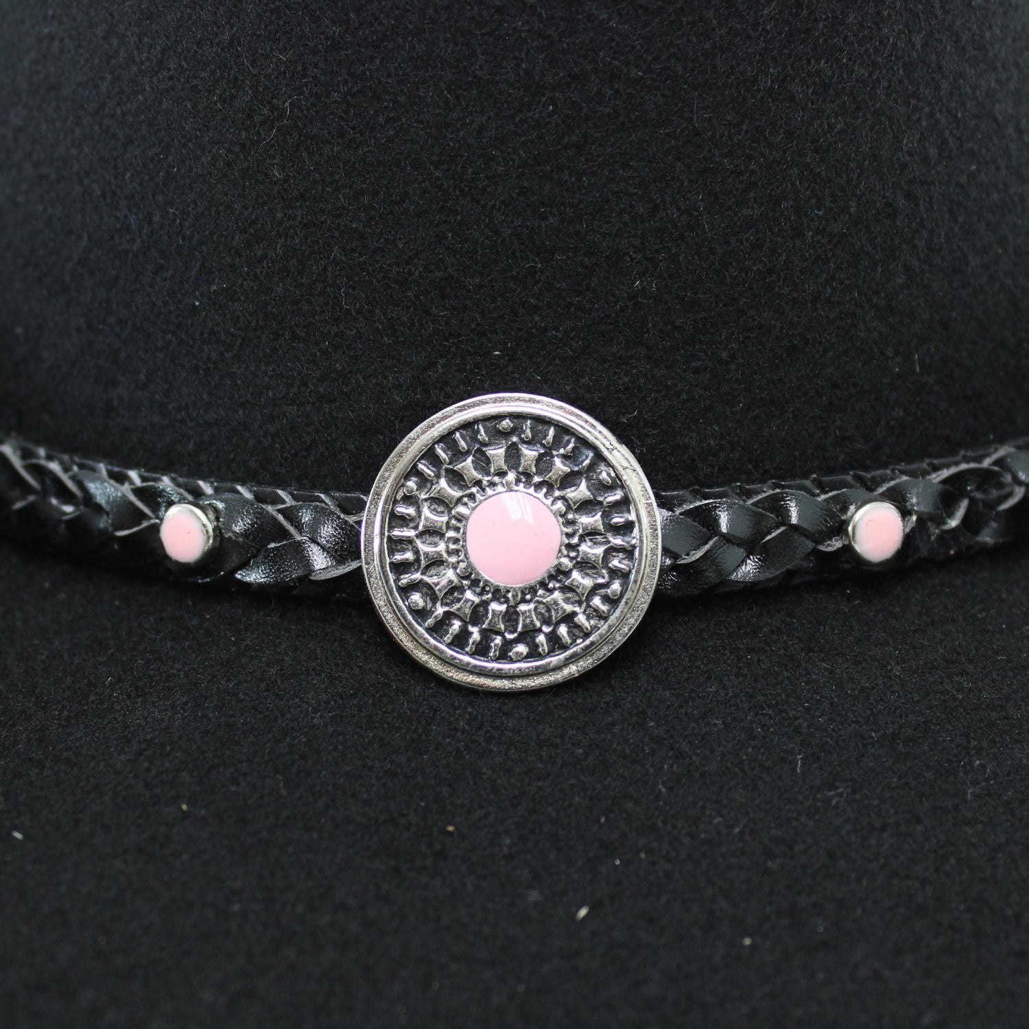 • Hatband: Braided Leather with Pink Beads & Center Concho