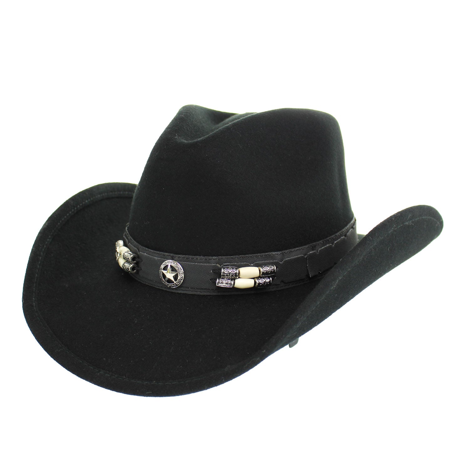 The Bullhide Good Lookin’ kids hat brings classic Western style to the younger crowd. Crafted from premium wool in a sharp black finish, this hat features a standout Texas Star concho accented with barrel beads for an authentic cowboy touch. Designed for comfort as well as style, it includes a padded sweatband to ensure a secure, all-day fit—perfect for rodeos, events, or everyday Western wear.