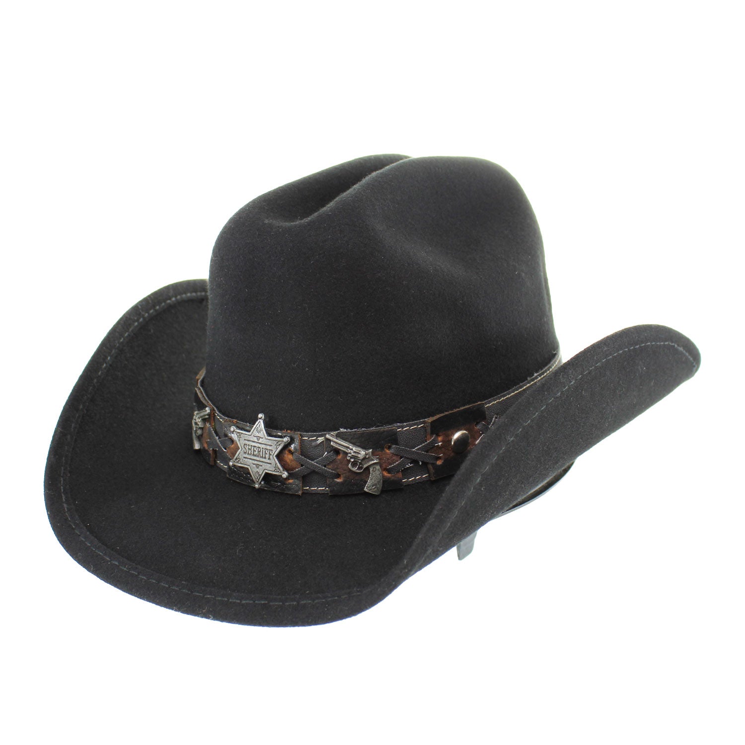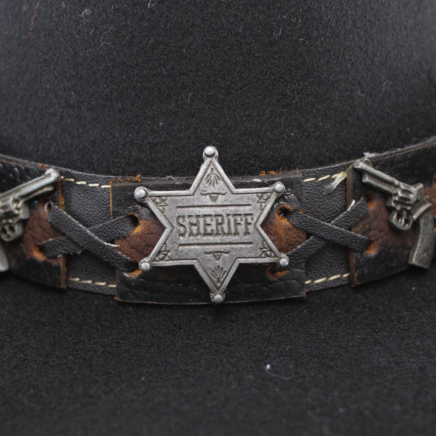 • Hatband: Western-Themed Band with Sheriff Badge & Guns