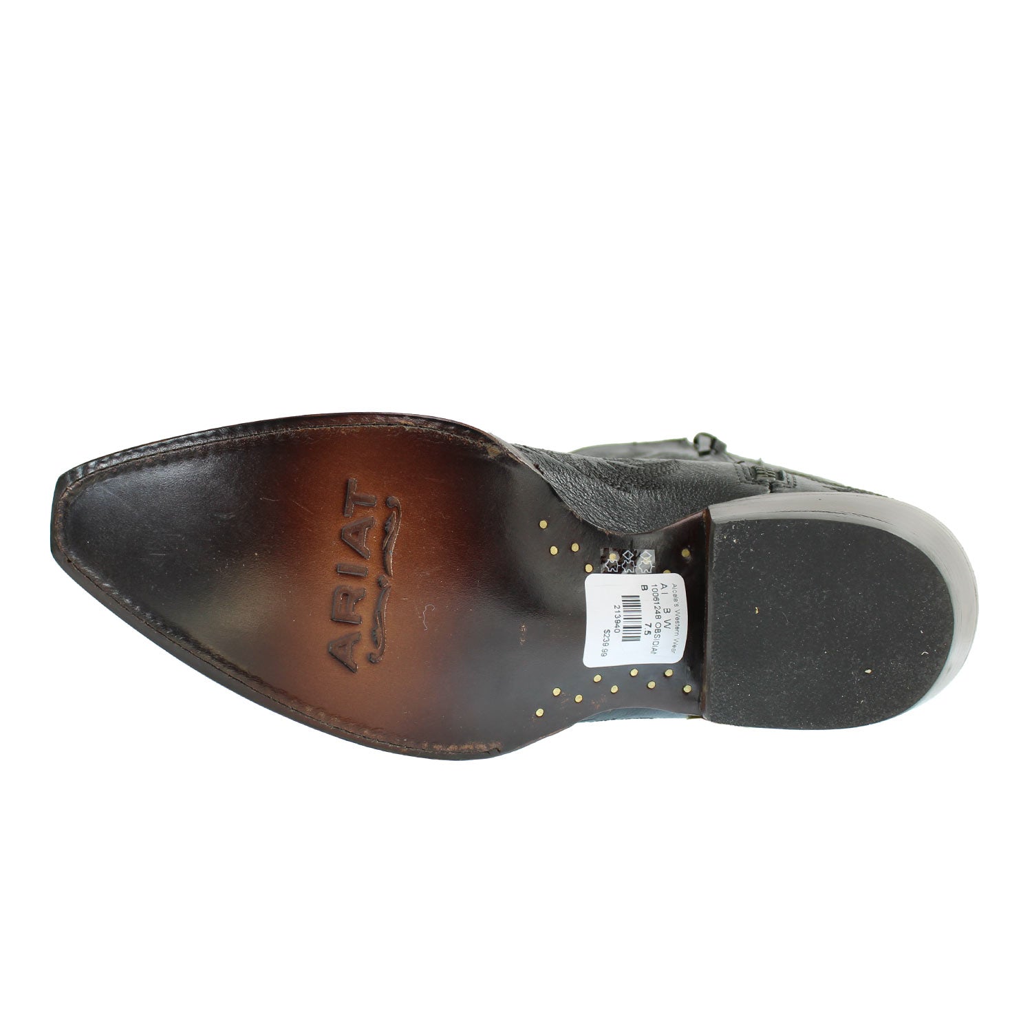 Women's Cate Western Boot – ObsidianThe Ariat Cate Western Boot brings refined Western elegance to your everyday style. Crafted from premium full-grain obsidian leather, this chic boot features a 9-inch shaft with subtle five-row stitching for a timeless yet modern appeal. The sleek X toe and 1.5-inch dress heel create a graceful silhouette, while the inside zipper ensures easy on-and-off convenience. Built with Ariat’s signature ATS® technology, these boots deliver ergonomic support and comfort on any terrain. Finished with a vegetable-tanned leather sole and resoleable Goodyear welt construction, they’re made to last—beautifully blending fashion and function.