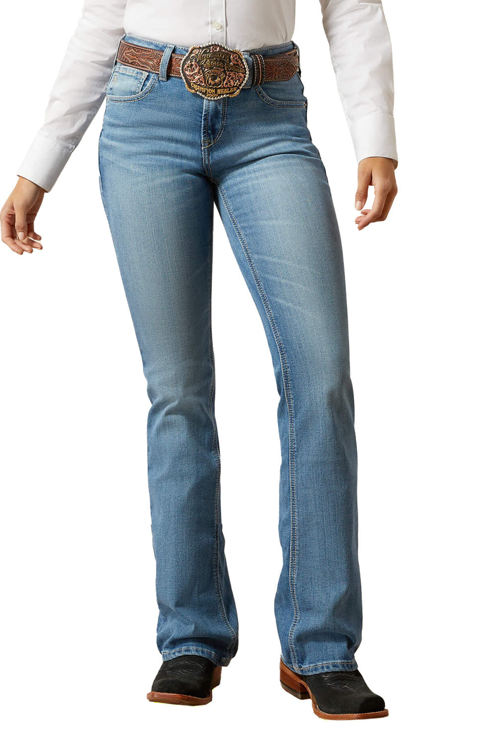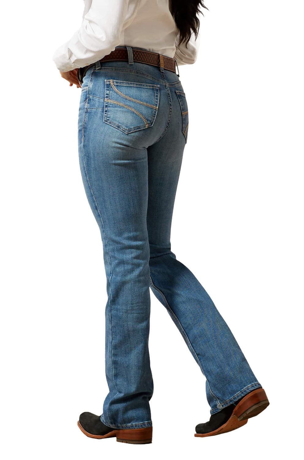 Women's High Rise Rowyn Boot Cut Jean – ChallisA modern classic for the cowgirl who loves a flattering fit with Western attitude. The Ariat High Rise Rowyn Boot Cut Jean in the *Challis* wash features a soft blue hue with traditional stitching on the back pockets, adding a touch of authentic Ariat flair. Designed to move with you, these jeans sit comfortably at the small of the waist and contour to your shape for all-day confidence—whether you’re riding, working, or relaxing. The boot-cut leg stacks perfectly over your favorite boots, creating that effortless Western look