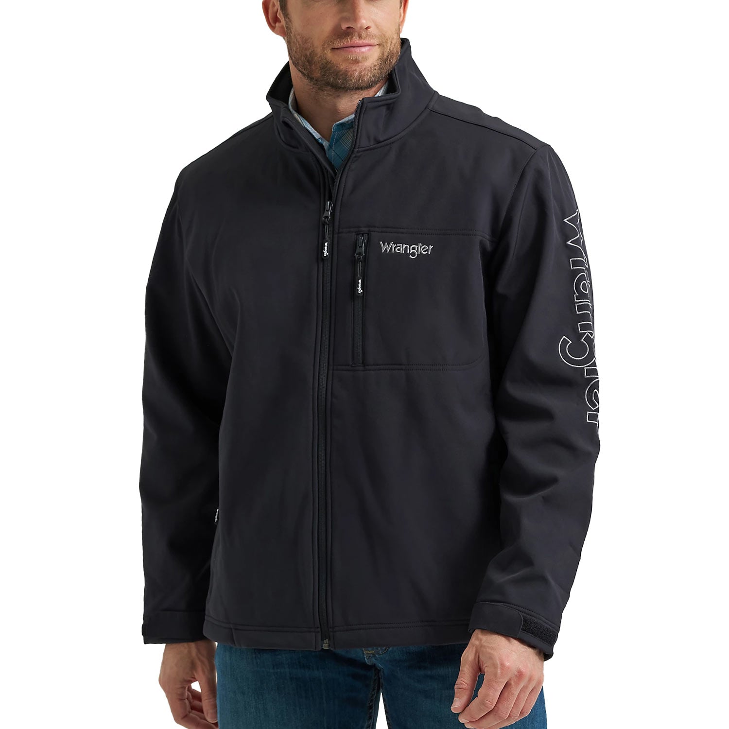 Warm, lightweight, ready to roll. The Wrangler Trail Jacket combines outdoor-ready performance with Western style. Crafted from a polyester-spandex blend for stretch and ease, it features water-repellent protection, fleece lining for warmth, adjustable waist and cuffs, four zippered pockets, and signature Wrangler logo embroidery on the chest and sleeve.
