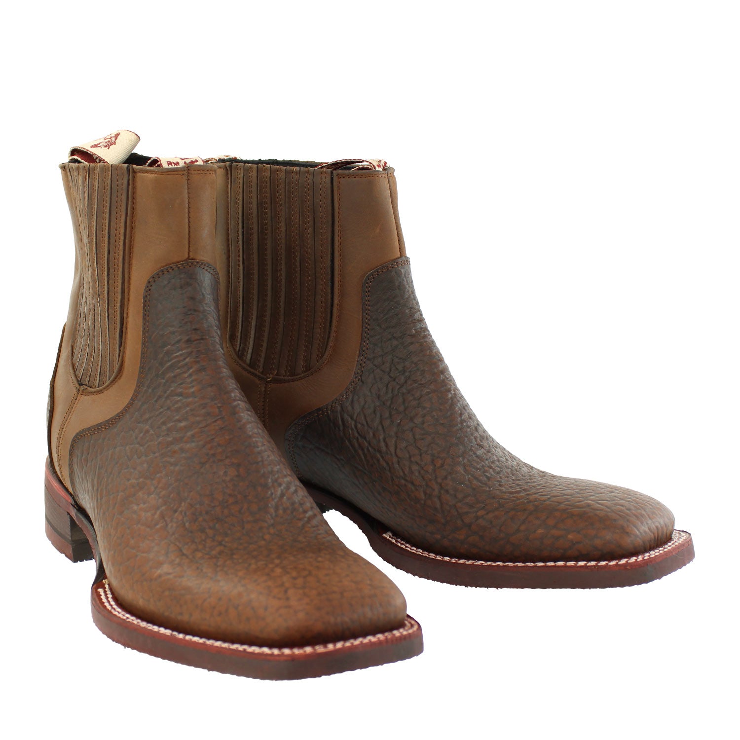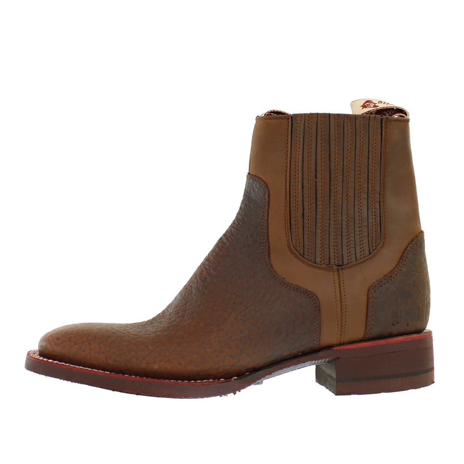 Step into rugged refinement with the El Canelo Men’s Cuello de Toro Boot in rich Shedron brown. Handcrafted from genuine bull neck leather, this short boot delivers a tough, textured look that’s built to last. The elastic side panels make it easy to pull on, while the 6" shaft and 1" heel provide a comfortable, versatile fit. Perfect for everyday wear or dressing up your Western style with a sleek edge.