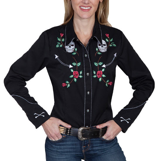 • Skulls and roses embroidery on front and back for a distinctive western flair